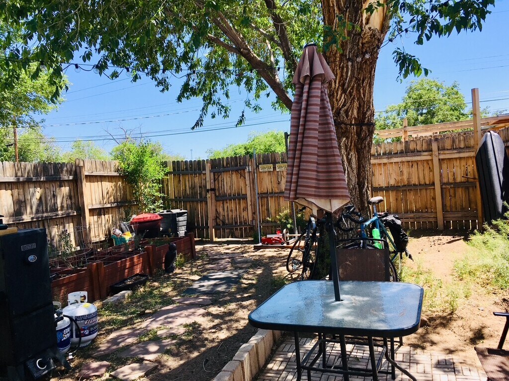 --Spacious, Bright, Immaculate, One-Story, 2 Bedroom Duplex. --Large Fenced, Private Yard with raised beds and great soil for gardeners! --Beautiful hardwood floors in living room and bedrooms, and ceramic tile in kitchen and bath (no carpets!) --Refrigerated Air with Quiet, Energy Efficient Mitsubishi Split System (individual heating/cooling units for each bedroom and living area). --Spacious Eat-in Kitchen with Stainless Steel appliances, pantry and lots of storage --Spacious, bright bathroom with great storage and tub/shower. --Gated Off-Street Parking available for one car plus plenty of street parking --Washer/Dryer Hookups --Large mirrored, bedroom closets --Energy Efficient Windows with Lots of Light! --Covered Front Porch with Gated Front Yard. --Close to Downtown, UNM, the Bosque and Nature Center. --Well behaved, non-aggressive breed pet(s) considered with $30/month, per pet fee if approved, at Owner's discretion. --Local Owners. --Non-Smokers Only. --Water/Sewer/Trash Included. --Only 1 block to Bike/Walking Trail--walk to La Montanita Coop! **Please note that Owner has its own application that must be completed. You may request an application via e-mail--there is NO FEE for Owner's application. Avail/ application is NOT required, but, if submitted may be considered as a supplement to Owner's application**
