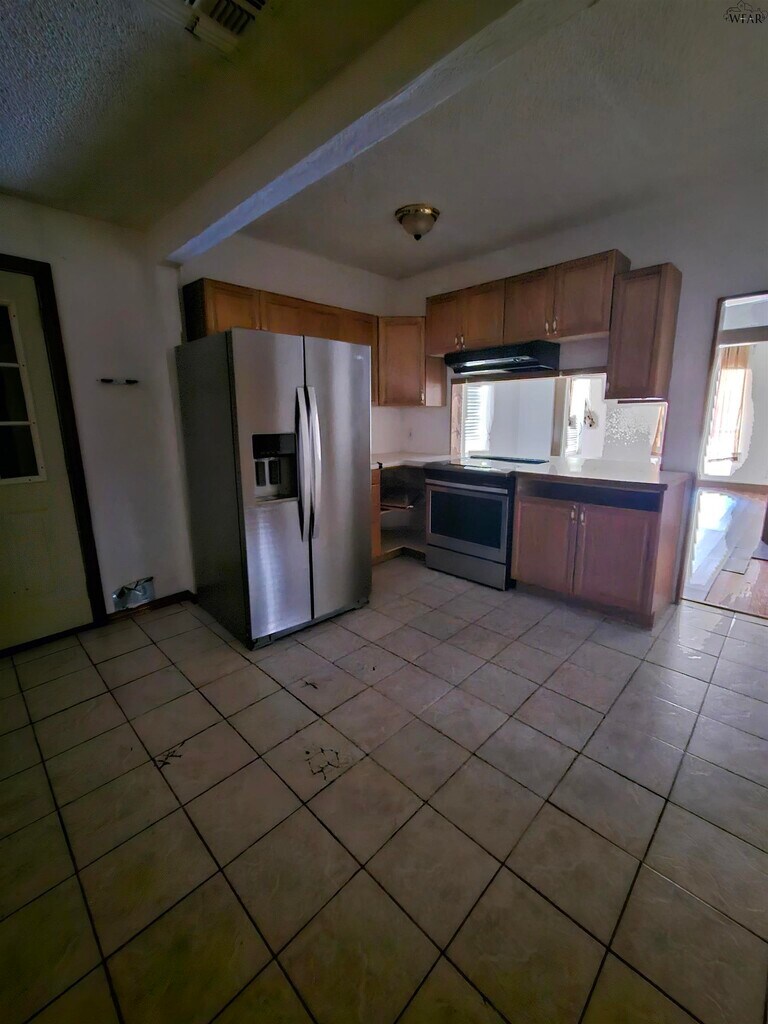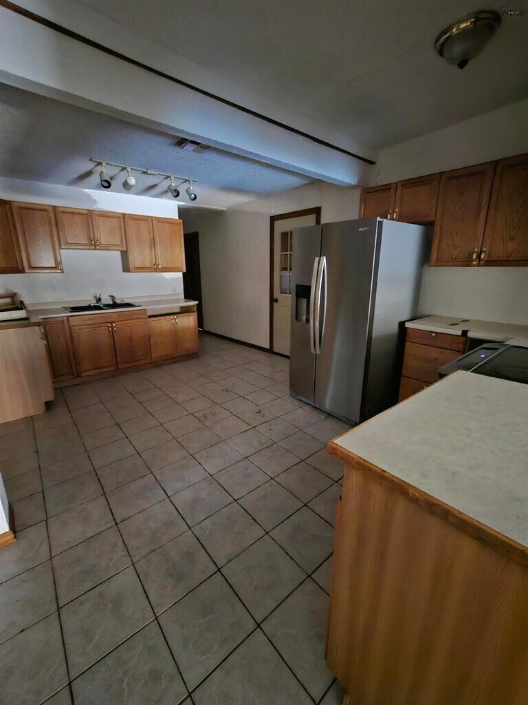 This property features a fully fenced yard, large kitchen with a supplied refrigerator, large primary bedroom w/ bathroom, attached garage, central heat and air, and 1588 sq ft of living space.
