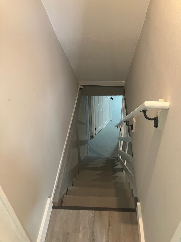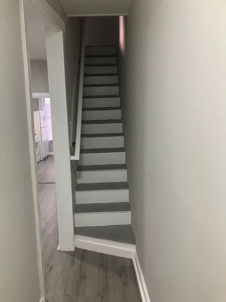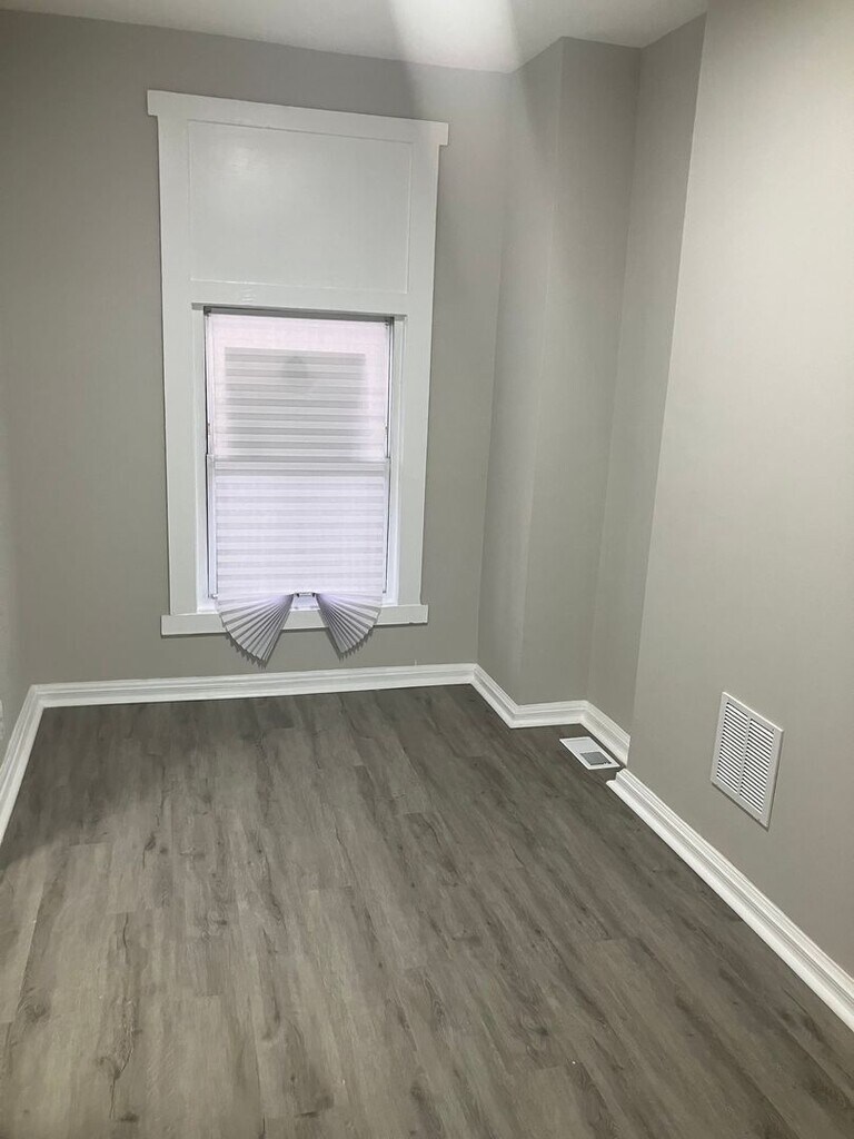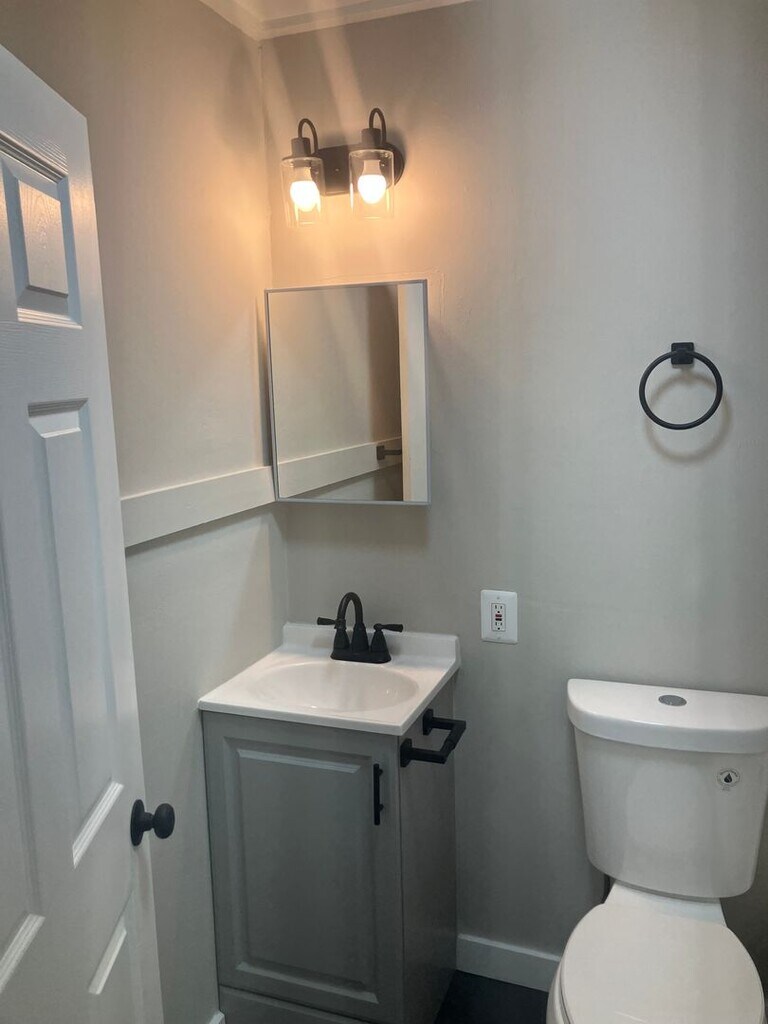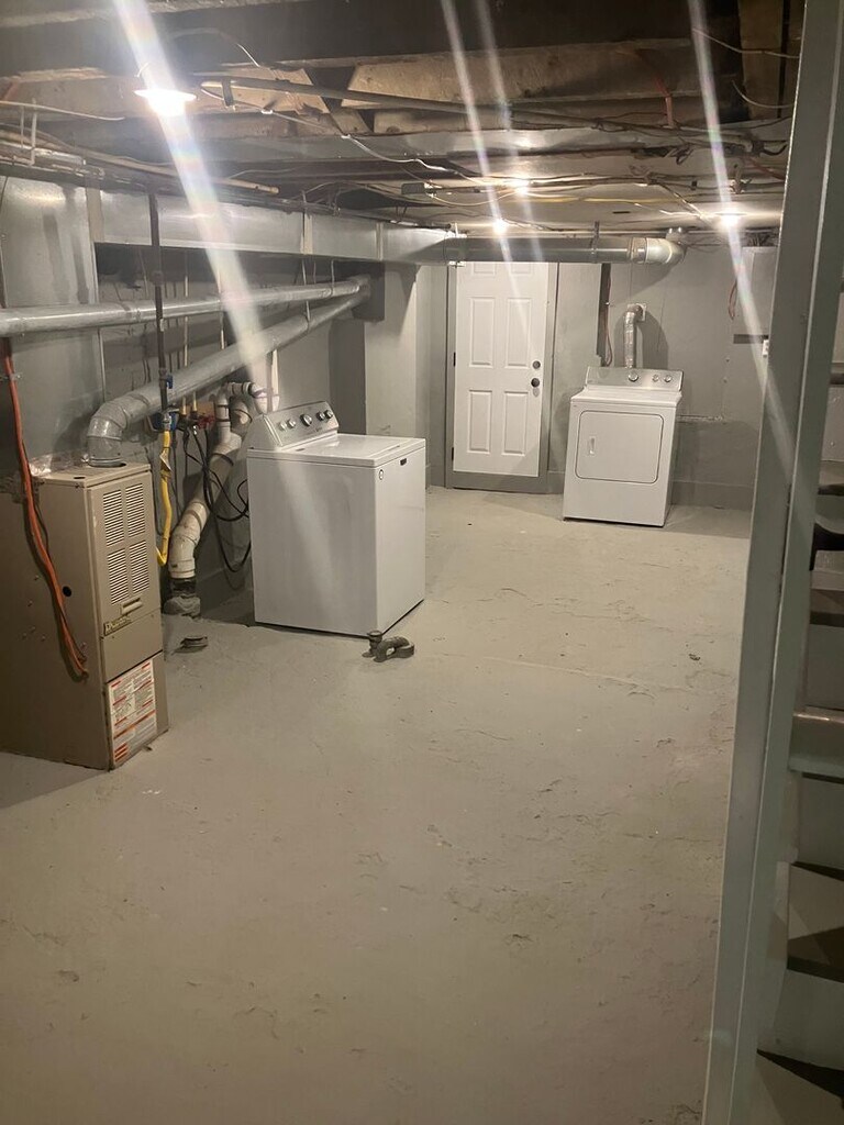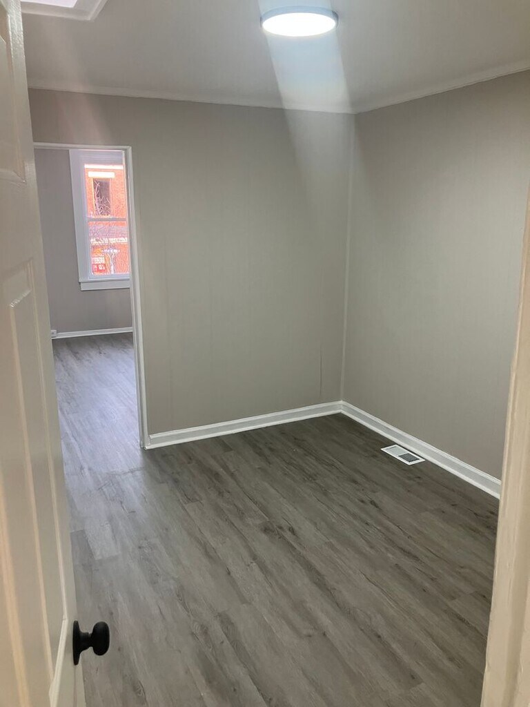 Step into this stylish 3-bedroom home featuring sleek gray walls with crisp white trim and bold black accents on doors and cabinet pulls. A brand-new washer and dryer make laundry a breeze, while the versatile pass-through second bedroom is perfect for a home office setup. Need extra space? The basement offers a fully decked-out “man cave” style spare room. Enjoy the welcoming front porch and entertain on the bricked-in back terrace. Modern updates meet classic charm in a move-in-ready package!