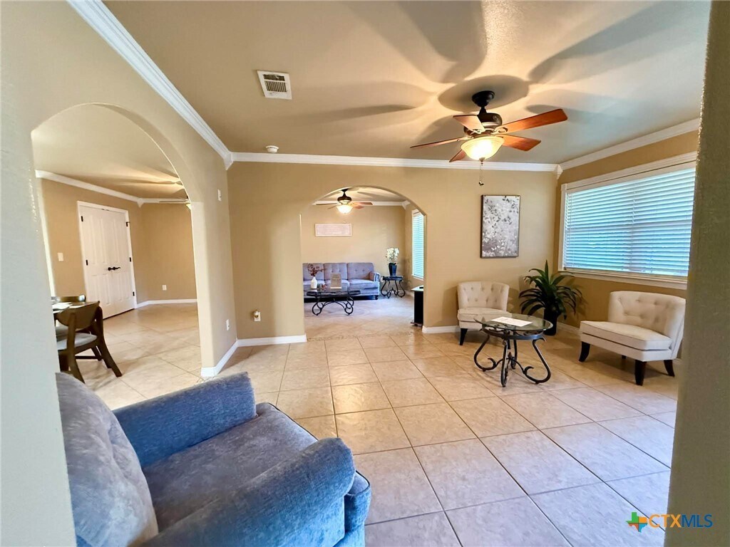 Relax with the whole family at this peaceful fully furnish place to stay. Fully renovated home. Three bedrooms,two living areas,two baths,spacious kitchen and dining area,utility closet. Front Porch,Covered patio and fenced yard. TVs in living room and 2 bedrooms. Spacious and comfortable rooms. No carpet,tiled floors. Ceiling fans in all rooms. 2 rooms with TVs. Nightstands have charging ports and lights.