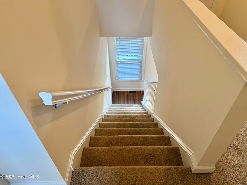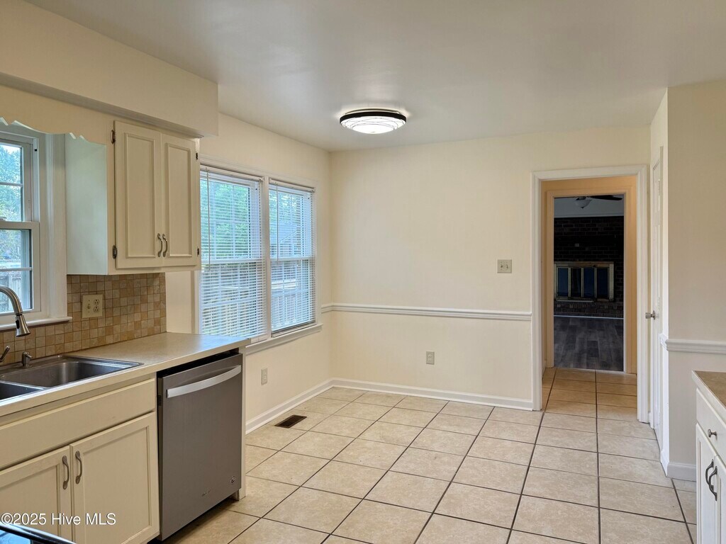 Well-laid-out 3BR/2.5BA with a large eat-in kitchen, formal dining, formal living room, and a cozy den. An inviting foyer with coat closet leads left to the living room and right to the staircase; straight ahead is the kitchen with access to the dining room, half bath, den, and an oversized 1-car garage. Upstairs: primary suite with full bath and walk-in closet, plus two additional bedrooms sharing a bath. Out back, enjoy a deck and a large fenced yard with double-gate access.