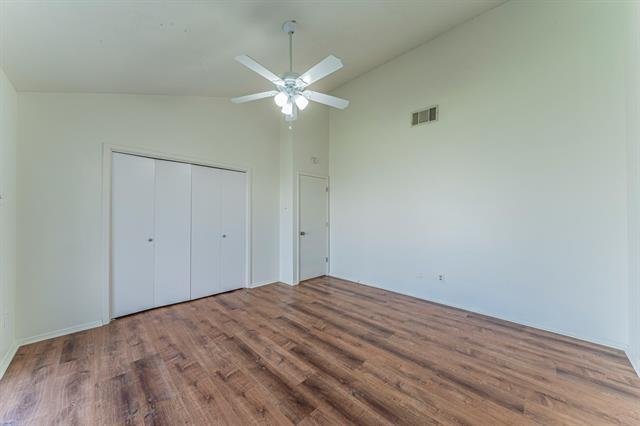 Charming half duplex tucked away on a quiet cul-de-sac at 502 Prairie Dell in Lewisville! This freshly updated home features beautiful wood-look flooring, granite countertops, and a stylish tiled shower. A vaulted ceiling in the main living area creates an open, airy feel filled with natural light. Enjoy a cozy wood-burning fireplace and a full laundry area for added convenience. The home offers a welcoming front courtyard and a covered rear patio—accessible through a sliding glass door from one of the bedrooms—perfect for relaxing outdoors. The fenced backyard provides a great space for pets or play, and a large storage shed offers extra room for tools or equipment. Two-car parking is available in the rear. Ideally located near shopping and dining with easy access to I-35 for commuting. Washer and dryer available for $25 per month. Applicant must provide proof of monthly income greater than 3X rent.