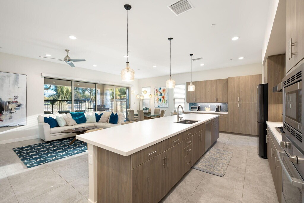 Resort living at The Retreat at Desert Willow! This amazing,furnished,3 bed,3 bath home backs up to the Desert Willow Golf Course. Turnkey Furnished. This corner unit has a very private view so you don't see any neighbors in the rear or to the end side. Close to the community amenities including the full gym,resort pool,lap pool and,spa,game room with ping pong,billiards,fire pits,& barbecues The Retreat has private golf cart access to the Desert Willow Resort. Relax on your private patio while grilling and enjoying a cocktail. Inside you'll find upscale finishes in a clean,modern,open floor plan. Beautiful bedrooms and baths with luxurious linens. Wait until you open the pocket doors from the great room to the very large back patio. Best of desert living! Close to shopping,dining,biking,& world-class golf. NOT AVAILABLE JAN-MAR 2026. Oct $5800,Nov: $6200,Dec $6800,April $7200.