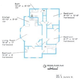 There is currently a 3 Bed 1 Bath Apartment for rent with 800 listed at 502 S Aurora St. It is Available August 10, 2026.