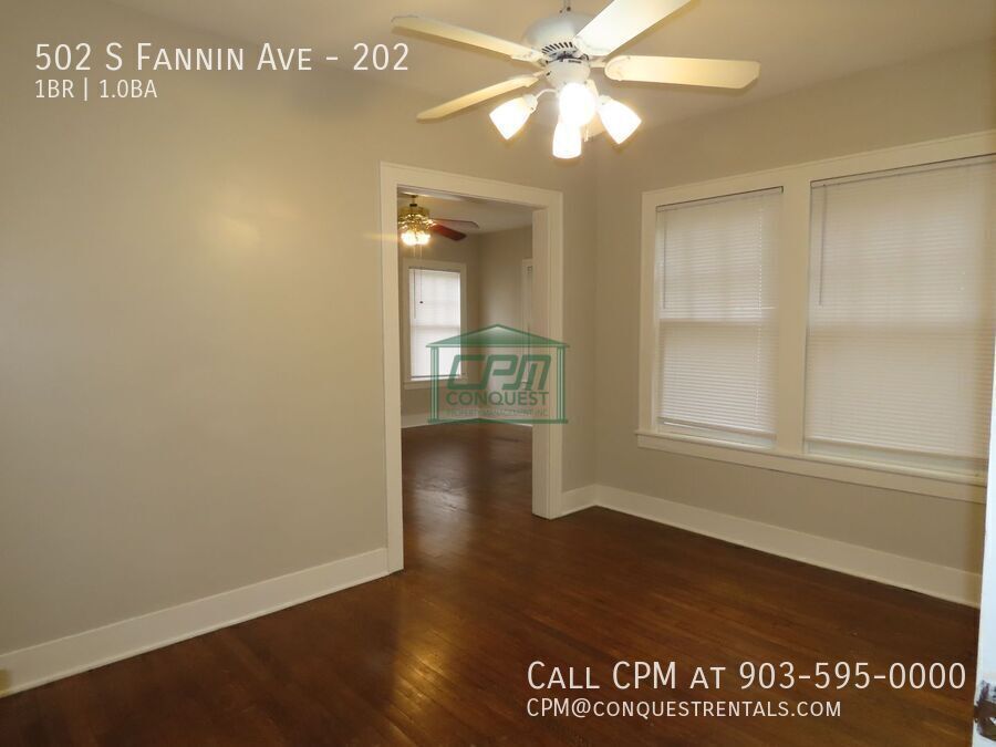 To schedule a SELF-showing for this property, please view this listing from our website or click this link: Conveniently located near Tyler's restaurants, businesses, and the hospital district, this charming one-bedroom, one-bathroom upstairs apartment is one you don't want to miss! The apartment features hardwood and tile flooring, and has an open living room and dining room. The kitchen comes equipped with a gas oven/range and a refrigerator (guaranteed). As a bonus, lawn care is provided! Apply today - this one won't last long! The school district is: Tyler ISD The schools are Bonner Elementary, Hubbard Middle, and Tyler Legacy High School. There is approximately 1,018 square feet of living space. No utilities are provided, the tenant is responsible for all. The Pet Policy for this property is: Pet Friendly, 25 lbs. max ***BE AWARE OF SCAMS! CPM is the only agent for the owner/landlord of this property. The accurate rent and security deposit amount is listed on our website at . Please call our office to verify any information at . CPM's office address is 1917 S. Beckham Ave. Tyler, TX 75701*** If you have pets, please confirm your pets are allowed at this property prior to submitting your application(s). You are required to complete a application for each pet when you submit your rental application. To complete all pet screenings, follow this link: and ‘share’ each completed profile with CPM. Depending on the outcome of your Pet Screening application(s), you may be subject to pay an additional pet deposit, carry additional liability insurance and/or pay Pet Rent per month. Once approved, a minimum of $300 pet deposit, per pet, will be required. Pet deposits are fully refundable after move-out if carpets are professionally cleaned and no damage is incurred. If you have a Service or Support Animal, please complete a separate screening application for each animal. To complete all screenings, go to and ‘share’ each completed Assistance Animal profile with CPM. The Conquest Property Management, Inc. Tenant Advantage Program (TAP) is designed to provide convenient and valuable, professional services to our residents. By applying to lease with CPM, tenants agree to be auto-enrolled in the program and agree to pay an additional $25 each month, payable with rent. This program includes benefits such as Filter Delivery, Online Tenant Portal, Waived Late Fees, Utility Concierge, Inspection Reschedule and more! Participation in this program may vary due to the property specifications. The cost of the program is all-inclusive. CPM also requires all tenants carry liability insurance ($100,000) for damage to the landlord’s property for no less than the following causes of loss: fire, smoke, explosion, backup or overflow of sewer, drain or sump, and water damage during the term of their lease. Applicant agrees to either provide proof of insurance prior to move-in date or be automatically enrolled in a group policy (additional fees apply). Applicant agrees to name CPM as an 'Interested Party' on the insurance policy. Application fees are non-refundable. CPM will process all complete applications upon receipt. Security Deposit must be paid within 2 hours of application approval. If the deposit is not paid in full in the allotted time frame, the property will be leased to the next qualified applicant. Please note: The security deposit is non-refundable until the end of the lease term. Cancellations will result in the forfeiture of the security deposit. The availability date for this property is the best estimate at the time of this listing. Based on the potential for unforeseen circumstances, the date is subject to change. Conquest Property Management, Inc. will update this property listing, as information becomes available. Square footage per SCAD, tenant to satisfy. To schedule a SELF-showing for this property, please view this listing from our website or click this link: Gas Oven/Range Hardwood Flooring None Pet Friendly 25. Lb. Weight Limit Refrigerator (Guaranteed) Tile Flooring Upstairs Apartment