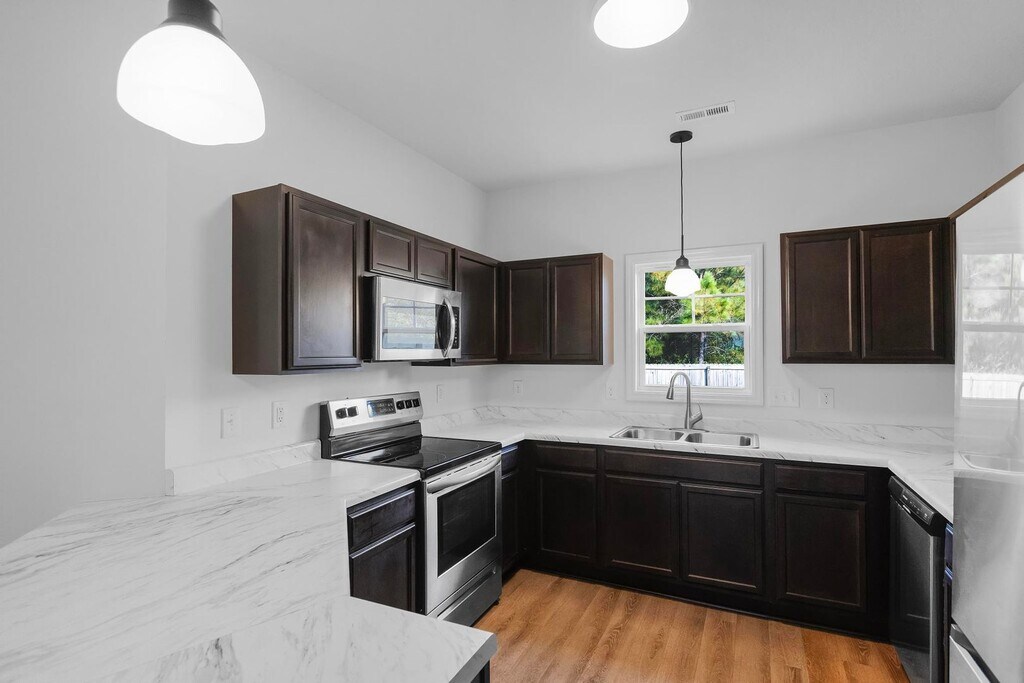 Welcome home to this charming 3-bedroom, 2.5-bath townhome with a garage in Holly Ridge—just minutes from Surf City shopping, beautiful beaches, and an easy jump onto Hwy 17 for a quick commute to Camp Lejeune or Wilmington. Step into the inviting open-concept living area, featuring a spacious kitchen outfitted with stainless steel appliances. The stylish wallpapered half bath downstairs adds a fun pop of personality. Upstairs, fall in love with the expansive primary suite, boasting a huge walk-in closet and a luxurious private bath with a walk-in shower featuring dual shower heads and a dual vanity. Two additional bedrooms and a full hall bath provide plenty of space for family, guests, or a home office. Additionally, a convenient laundry closet—complete with a washer and dryer—makes daily living effortless. Relax on your covered back patio overlooking the fully fenced yard, perfect for summer evenings and outdoor enjoyment. We strive to provide an experience that is cost-effective and convenient. That’s why we provide a Resident Benefits Package (RBP) to address common headaches for our residents. Our program handles insurance, identity protection, pest control, air filter changes, utility set up, credit building, rent rewards, group rate internet, and more at a rate of $53.95/month or $68.95/month with pest control, plus $65.00 for group rate internet/month, added to every property as a required program. More details upon application. Most homes come with high speed internet up to 1 Gig at a special group rate, with premium support and setup to get you connected fast at move-on.