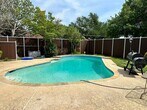 Beautiful 3 bedroom w gameroom in Allen ISD! Large kitchen w ceramic counter tops, lots of cabinets and gas cook top. Vaulted ceilings in living room, lam wood floors, wood burning fireplace and open dining area. Split gameroom w private bath and walk out to covered patio and in-ground pool. Master suite has open vanity all in shower and dual walk in closets w private study or sitting area. This home will go fast!!
