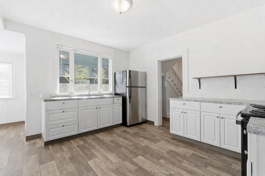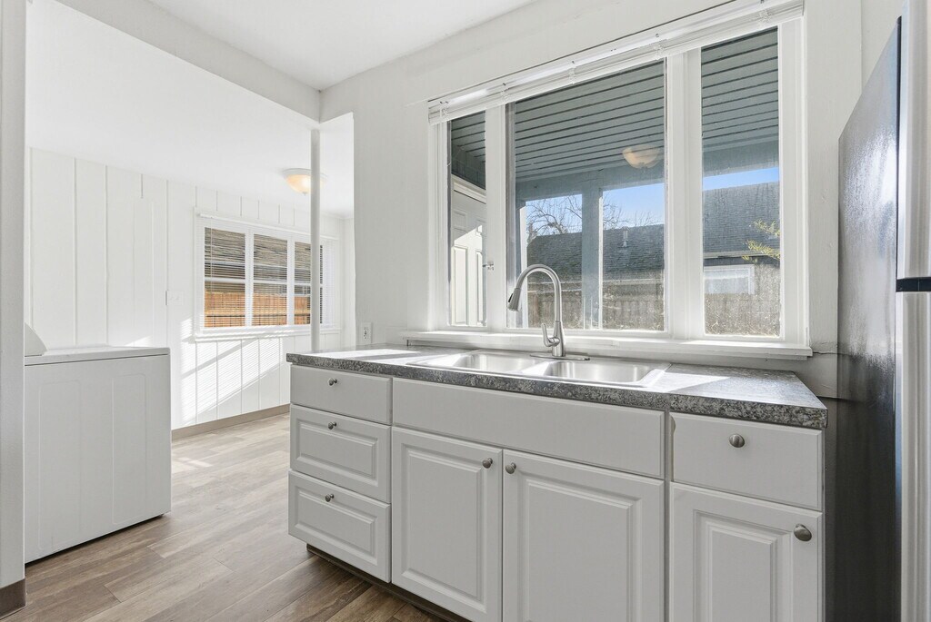 This well-maintained home combines classic charm with practical updates in a highly convenient location, close to neighborhood amenities and outdoor space. -Main level includes living room, dining area, kitchen, and a large primary bedroom. -Upstairs has three additional bedrooms and additional storage. -Gas fireplace and electric heat -Laundry machines included, with a laundry area off kitchen -Fresh flooring and paint and window coverings -Good natural light throughout -Off-street parking on driveway -Directly across from Lents Park, offering open views, green space, and easy access to trails and recreation Single Family Home