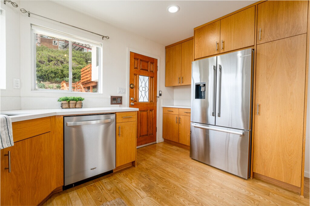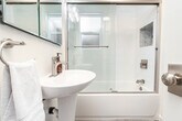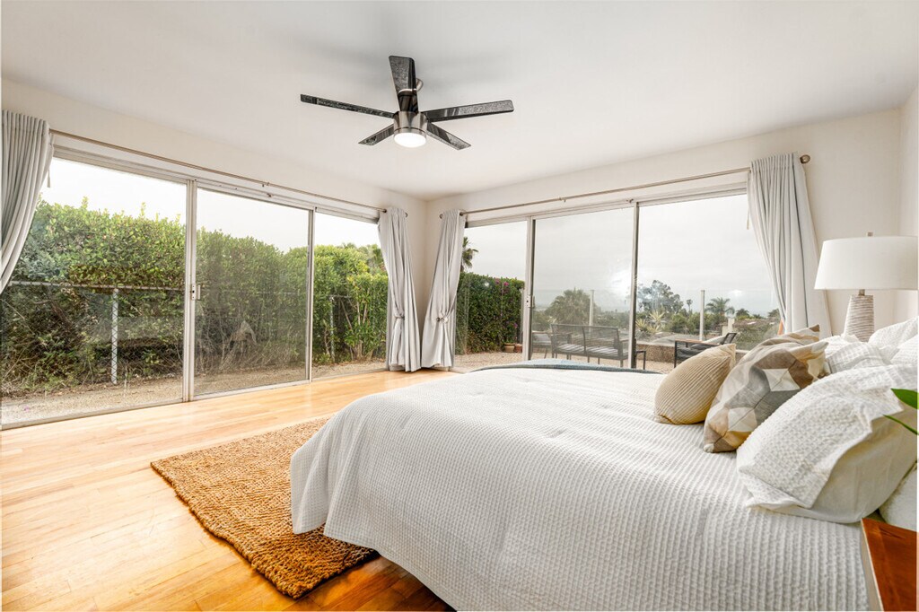 Welcome to your hillside escape in Pacific Beach, where you can enjoy stunning ocean-view sunsets from your private balcony. This stylish 2-bedroom, 2-bath home is designed for comfort and relaxation, offering unforgettable San Diego sunsets. The spacious living room features floor-to-ceiling glass windows, a cozy fireplace, and a large Smart TV with all your favorite streaming apps. The fully stocked kitchen includes an island and built-in appliances, complemented by brand new furnishings throughout. Inside, you'll find a spacious living room with floor-to-ceiling glass windows, a cozy fireplace, and a large Smart TV with all your favorite streaming apps. The fully stocked kitchen features an island and built-in appliances, with brand new furnishings throughout. The sleeping arrangements include a king-size bed in the master bedroom with an en-suite bathroom, two queen beds in the second room, and two comfy sofa beds in the living room. Family add-ons are available, including a Pack 'n Play Crib, High-Chair, Beach Wagon, Surf and Boogie Boards, and Car Rentals. Pets are welcome with a $100 fee per pet per stay. Please keep pets off the beds, comforters, and sofas to avoid extra cleaning or replacement fees. Undeclared pets will incur a $200 fee per pet. For monthly guests, there is a utility cap of $350, with guests responsible for any overages. Located in a peaceful hillside setting, this home is ideal for morning coffee or evening wine on the large private patios and balcony with panoramic ocean and bay views. You can walk to Turquoise Street cafés and restaurants, and enjoy a quick drive to La Jolla, Bird Rock, Mission Bay, and Wind & Sea Beach, with easy access to all the best of San Diego. The property is equipped with security cameras on the exterior for your safety and peace of mind. An interior device monitors noise levels, temperature, and motion to ensure a pleasant stay. Filming or production work is allowed with an additional fee. Important house rules include a minimum age of 26 to book, shoes off upon entry, quiet hours from 10 p.m. to 9 a.m., and no parties allowed. Undeclared guests will be charged $100 per person, and smoking indoors will incur a $200 charge. Tampering with Wi-Fi, security cameras, or locks will result in fees. Pets must be declared, and undeclared pets will incur a $200 fee per pet. Monthly guests have a utility cap of $350, with responsibility for any overages. The home offers blazing-fast Wi-Fi for entertainment and remote productivity, ensuring you can work comfortably from home.
