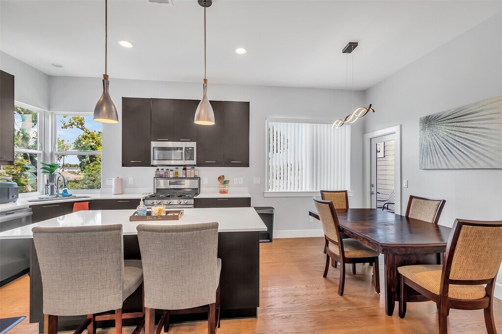 Moises ArteagaWelcome to Gagne Homestead in Denver Harbor a growing community rich in history and neighborly spirit. 2020 build, impeccably maintained, lightly lived-in home sits on a corner lot. Fully fenced turfed yard and side yard ideal for entertaining, plus a double-wide drive leading to an extended two-car garage perfect for a full-size truck, storage, or workshop. Inside, hardwood and ceramic tile floors provide a carpet-free lifestyle. Two downstairs bedrooms offer privacy from the upstairs primary suite, complete with a soaking tub, walk-in shower, dual sinks, expansive walk-in closet, and a beautiful downtown Houston view. Bathrooms feature floating cabinets and modern finishes, while the kitchen shines with stainless steel appliances, ample storage, and soft-close drawers. A dining-area balcony, spacious utility room with sink, ceiling fans throughout, and a generator-ready panel add convenience. **Assumable 2.75% loan available for qualified buyers Please see Assumable Loan Flyer/Info