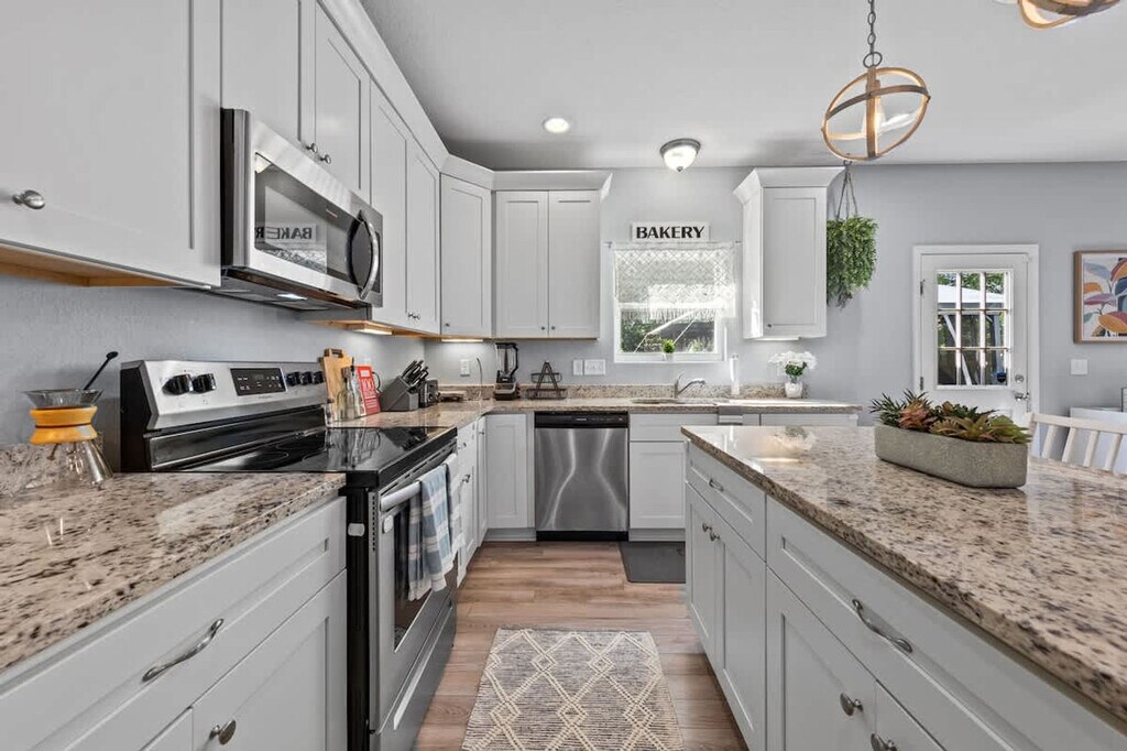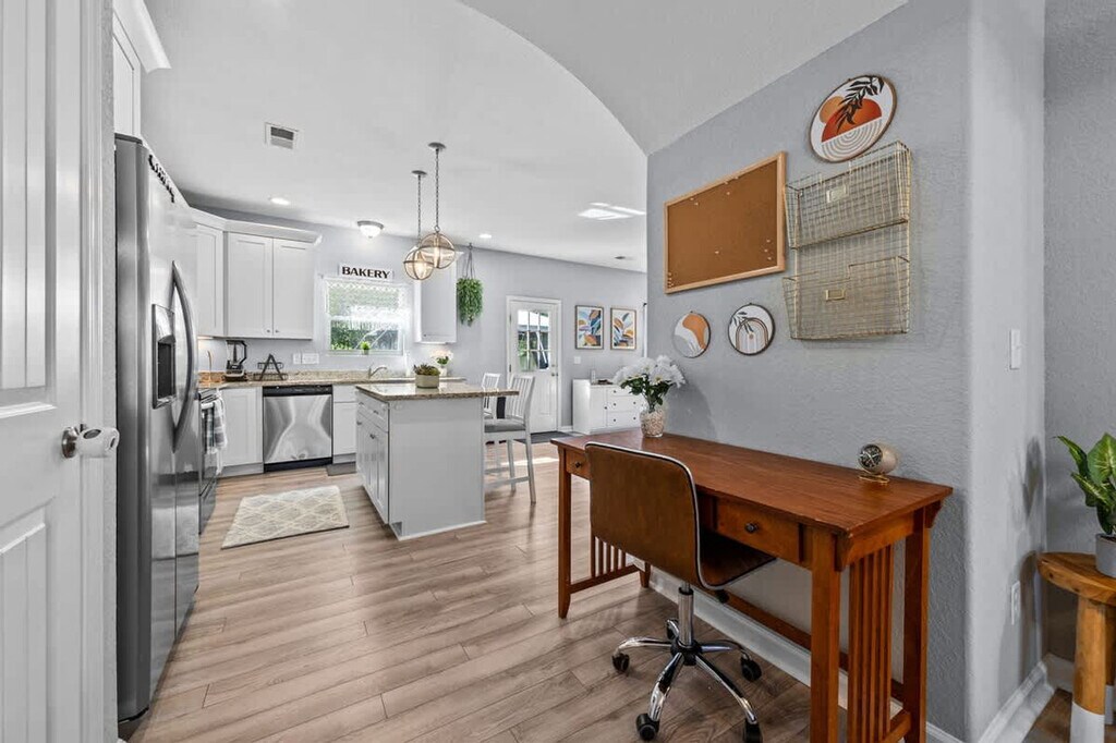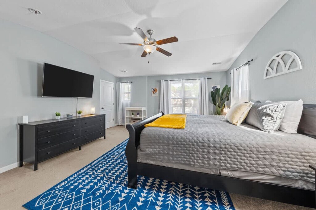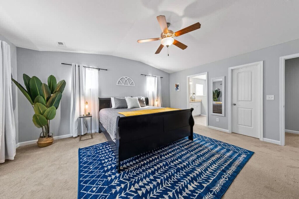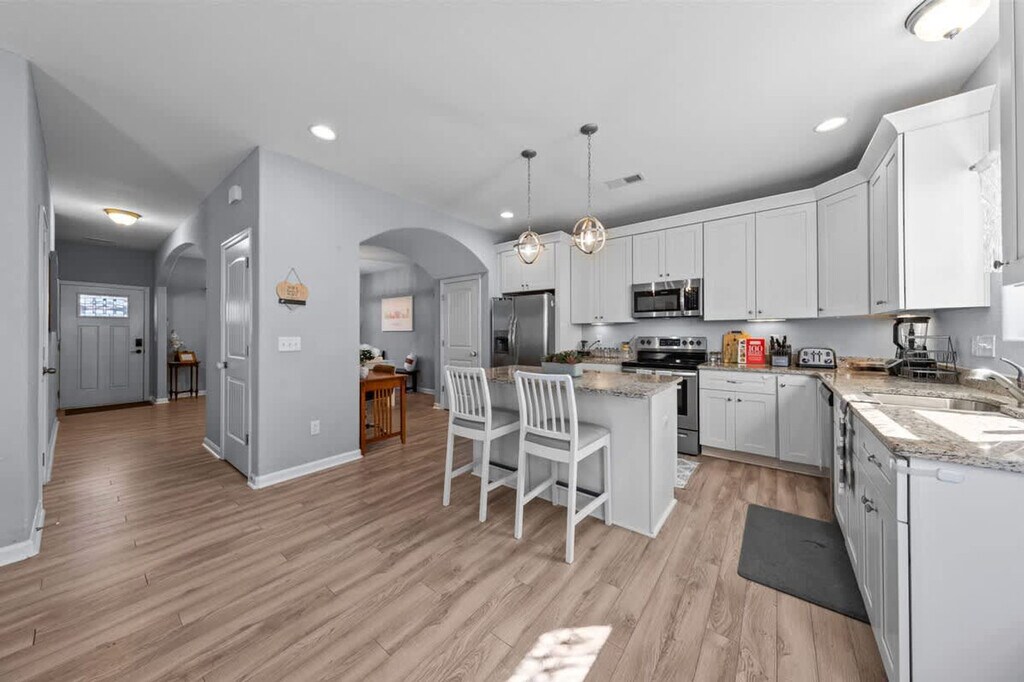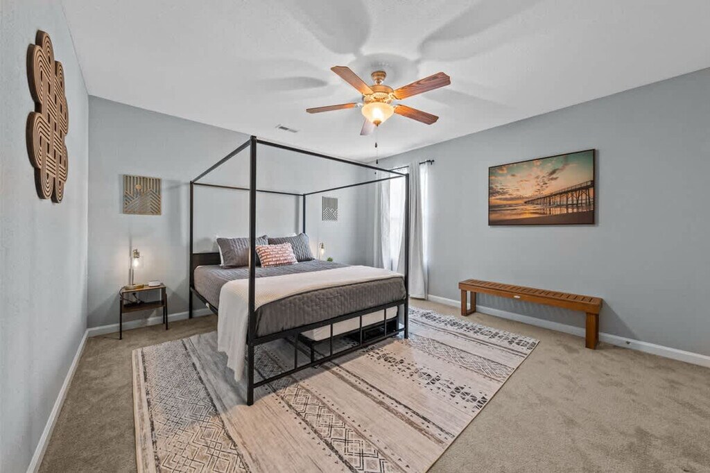 Welcome to the Homey Haven! Feel at home in this 2300 sq ft home with 3 beds and 2 1/2 baths, tailor-made for a big family gathering or getaway. Enjoy an open concept space, indoor/outdoor dining, and cozy bedrooms. This home features dining for 8, an outdoor projector and firepit, a BBQ, a child-proof interior, children's amenities like cribs and highchairs, and a fireplace. Dogs are allowed with a maximum of two dogs during your stay, with a $99 non-refundable pet fee. This home is conveniently located just 5 minutes from restaurants, 10 minutes from shopping, 15 minutes from OV Beach, and 22 minutes from VA Beach. Additional cleaning fees will apply for smoking indoors ($250), vomit/bodily fluid or waste ($250), illegal drug paraphernalia ($250), glitter or confetti ($200), unauthorized pets ($200 per pet), dirty dishes ($50), and missing towels ($20 per towel). Pets must not be left alone during your stay, you must pick up after your pet in the yard, and they are not allowed on furniture or beds. Evidence of pets on the furniture or beds will incur additional cleaning fees. Cats are not allowed at this property. If additional guests are brought beyond the original reservation guest total and the host is not notified, the booking will be canceled immediately with no refund and guests will be required to leave the property. Any additional guests over the amount specified in the reservation (or pre-approved by the hosts) will result in a $75 fee per person. Failing to vacate the property by the posted/agreed upon checkout time will result in a $60 per hour (pro rated) late checkout fee. Quiet hours must be maintained between 10pm-8am. Additional cleaning fees will apply for drug paraphernalia ($300), bodily fluid or waste ($300), glitter or confetti ($250), smoking ($250), unauthorized pets ($250), and dirty dishes ($50). Includes a dedicated office with speedy Wi-Fi. [SI]