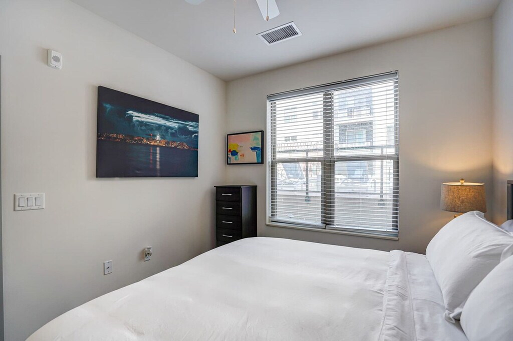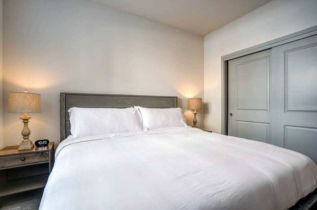 Feel at home in this 1st-floor unit on the East Side of Madison. This apartment features a fully stocked kitchen with everything you will need to cook a meal, a dishwasher, a 65" Roku Smart TV for your Netflix or other platforms, central AC and heat, and an in-unit washer and dryer. This apartment offers underground parking, a pool and outdoor area, a fitness area, a pet washing station, and a car washing station. Please inquire about special pet check-in instructions. Located near American Family Insurance and UW Health East Clinic, there is a metro bus stop that is a 10-minute walk from the apartment. Restricted check-in times apply, so please inquire for details. A criminal background check is required for this building. Last-minute bookings made for late Friday, Saturday, or Sunday may require the check-in date to be pushed back to Monday due to the background screening requirement. Please keep the apartment, furniture, dishes, linens, and towels reasonably clean during your stay. Dirty towels and linens can be washed in the washer and dryer. Kitchen supplies should not be ruined or full of old food when you check out. Please only use the black towels for makeup removal. If you are staying in a pet-friendly apartment, pet waste should be cleaned up and disposed of in the outside trash. Any smoking will result in immediate cancellation of the reservation with no refund for the entire stay, and a charge to remediate smoking will be the actual costs of complete environmental remediation or $3,000, whichever is lower. Pets on the premises without advance written permission will result in actual costs of complete environmental remediation or $3,000, whichever is lower. Excessive noise violations after the first complaint will result in cancellation of the reservation with no refund. If there is damage to the apartment and we are not notified, it can result in cancellation of the reservation. Missing or destroyed fixtures or personal property will result in actual replacement cost plus a restocking fee of $50.00. [SI]