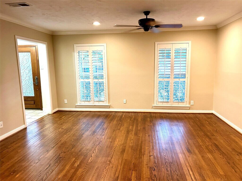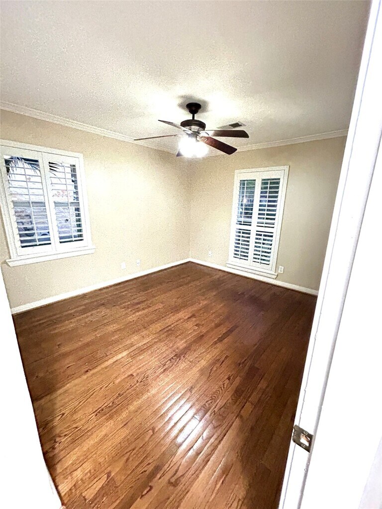 This beautifully maintained 3 bedrms and 2 baths home in this desirable well-kept Meyerland neighborhood. The gorgeous hardwoods throughout are stunning and the 2" plantation shutters add wonderful character to the home. The floor plan offers an open living area,spacious dining,and an updated kitchen with ample cabinets and counter space.The curved island countertop feature a cooktop.The primary bedrm en-suite features a walk-in closet,French doors to backyd and a bathrm with a spa like shower with rain shower head and jetted sprayers.The secondary bedrms are a nice sized for roommates,children,or office.The Retro-chic mid-century guest bath has vintage light blue tile with crisp white cabinets,crown molding,and a round mirror. There is ample storage space with 2 hall closets. The beautiful backyard is fully fenced.All information is deemed reliable but not guarenteed;buyer to verify all information. PLEASE NOTE THE LIST PRICE IS FOR 24 MTHS.(PREFFERED) $2875 IS FOR 12 MTHS. MLS# 57073066