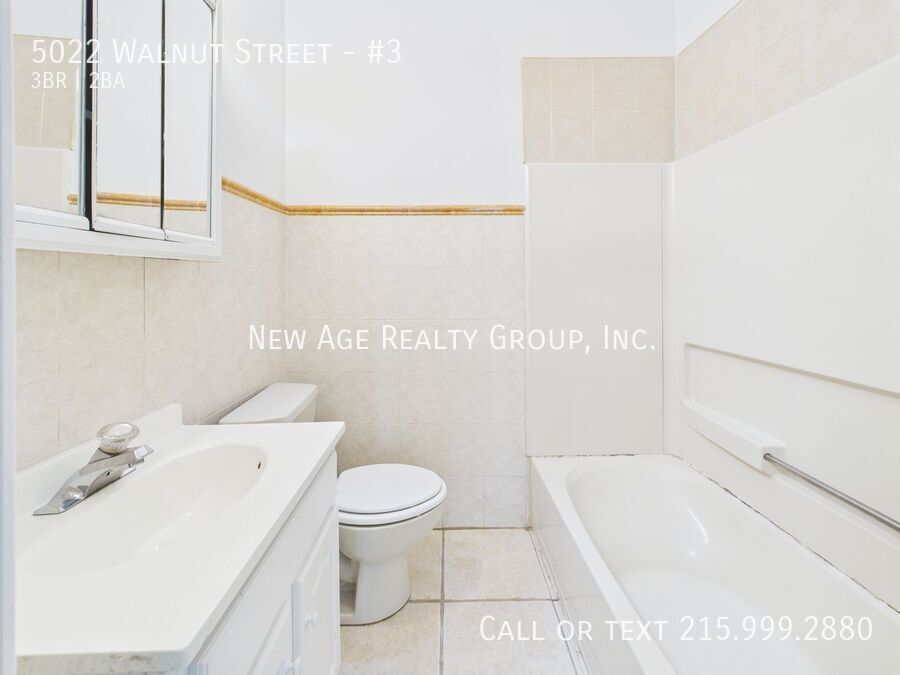 This is a pleasant 3 bedroom, 2 bathroom apartment located near the 52nd Street Shopping District in the West Philadelphia neighborhood of Philadelphia. Upon entering, you have a cozy common space, including the kitchen and possible office space when you walk in on the 3rd floor. It features wall to wall hardwood flooring, great natural light, and evenly sized bedrooms, with closets in each bedroom. The kitchen has modern appliances including a microwave and newly refinished cabinets. The 2 bedrooms are located near the back of the unit and have ample closet space. The master bedroom has a beautiful bay window, overlooking Walnut St. The 2 bathrooms are fully tiled with a tub/shower and under-the-sink storage. The bathroom off of the kitchen/living room combination also has wall to wall ceramic tiles and a skylight. This property is located very close to the various lines of public transportation, restaurants and shops like Brown & Sugar Bakery and The Paul Robeson House and Museum. Tenants are responsible for gas and electric. There is a $75 per month charge for water/sewer. Tenants must obtain renters Insurance! Sorry no pets. All New Age tenants will be automatically enrolled in a Resident Benefits Package (RBP) for $25 per month, which includes $5k in property damage reimbursement, credit building through timely rent payments, a resident rewards program, and so much more! These benefits are designed to improve your living experience and put money back into your pockets. All information about this package can be found at