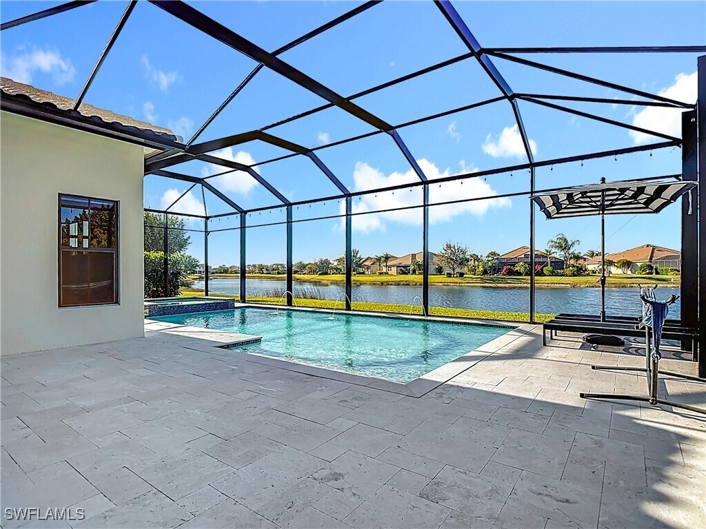 Experience elevated living in this exceptional 4-bedroom,3-bath residence showcasing nearly 2,900 sq ft of refined interior space,soaring 12-ft ceilings,and breathtaking lake views. Thoughtfully designed and beautifully upgraded throughout,this 2019 home delivers the perfect blend of luxury,comfort,and style in one of Ave Maria’s most desirable neighborhoods. The chef’s kitchen serves as the centerpiece of the home,featuring a wall oven and microwave,premium cabinetry,expansive countertops,and an open layout ideal for entertaining. Impact windows provide peace of mind,while tile flooring throughout adds a clean,upscale finish. Every detail has been elevated,from upgraded lighting to refined finishes that enhance each room. Step outside to your private outdoor retreat. The screened-in lanai,sparkling pool,and relaxing spa all overlook a serene lake,creating a resort-style atmosphere right at home. The outdoor space is perfect for gatherings,quiet evenings,or simply enjoying Florida’s year-round sunshine. Additional highlights include a 2-car garage,pavered driveway,upgraded landscaping,and a screened front entry for added comfort and appeal. Residents of Maple Ridge enjoy access to a world-class amenity center featuring a resort-style pool,fitness facility,dog park,billiards room,playgrounds,sports courts,walking paths,and vibrant community events. Living in Ave Maria means unmatched lifestyle,convenience,and small-town charm.