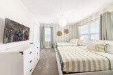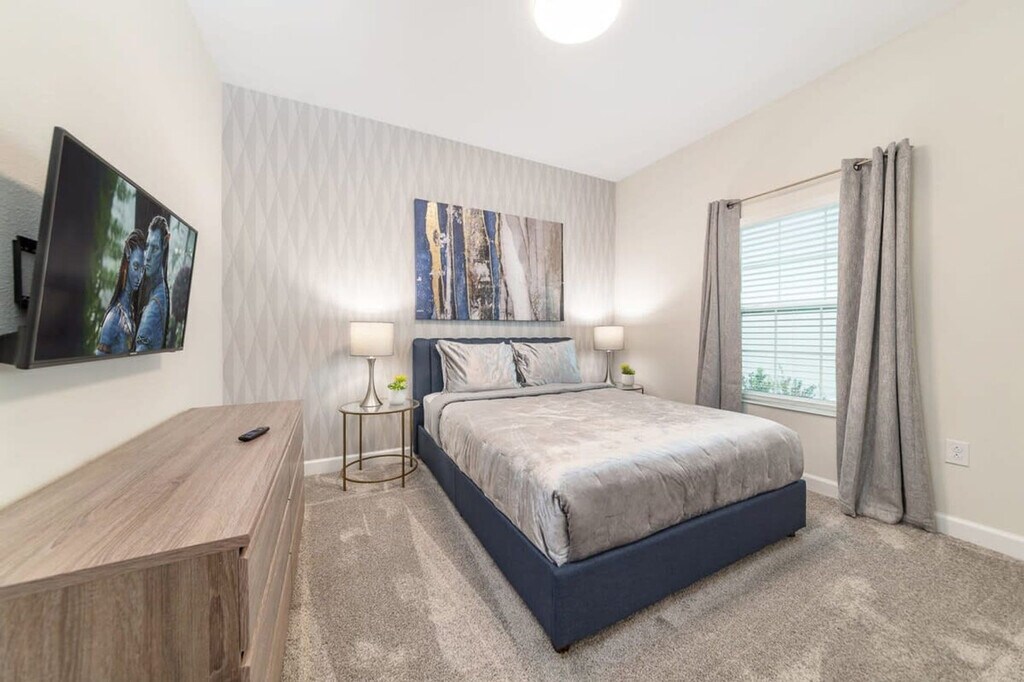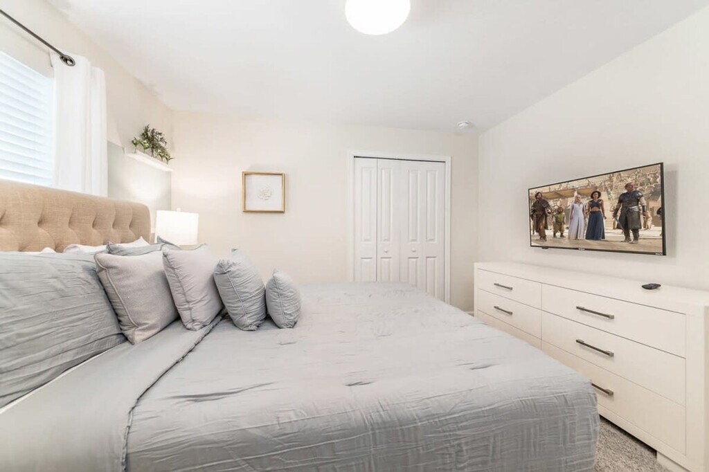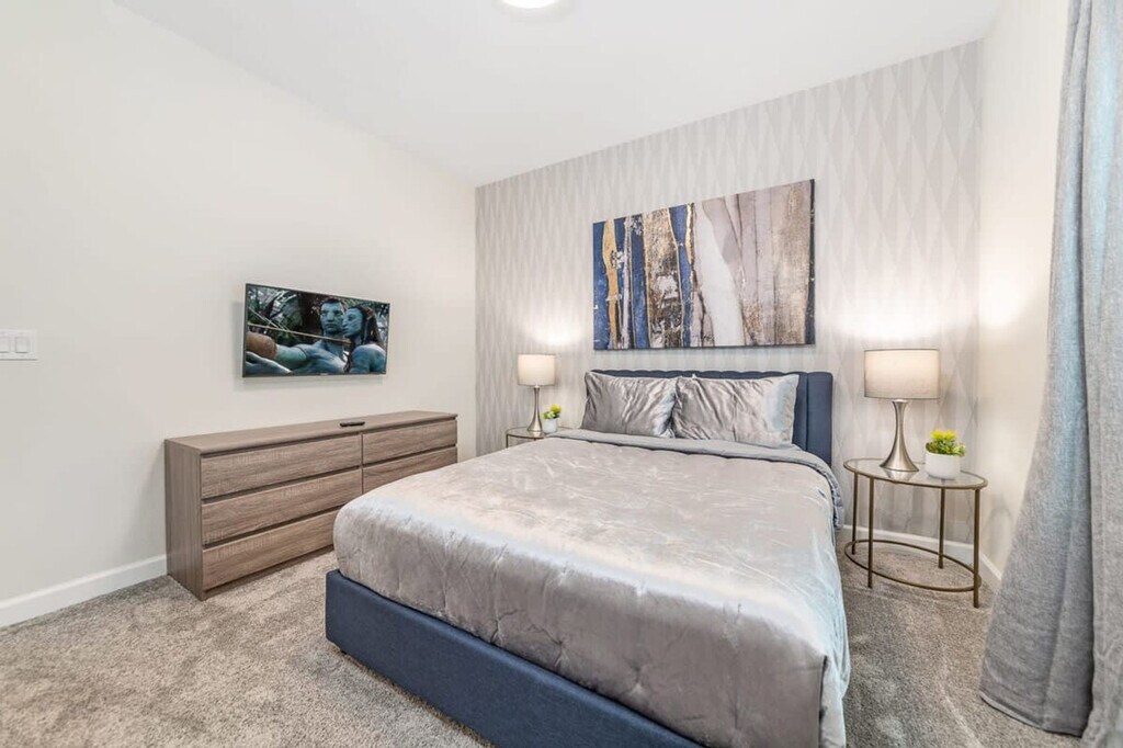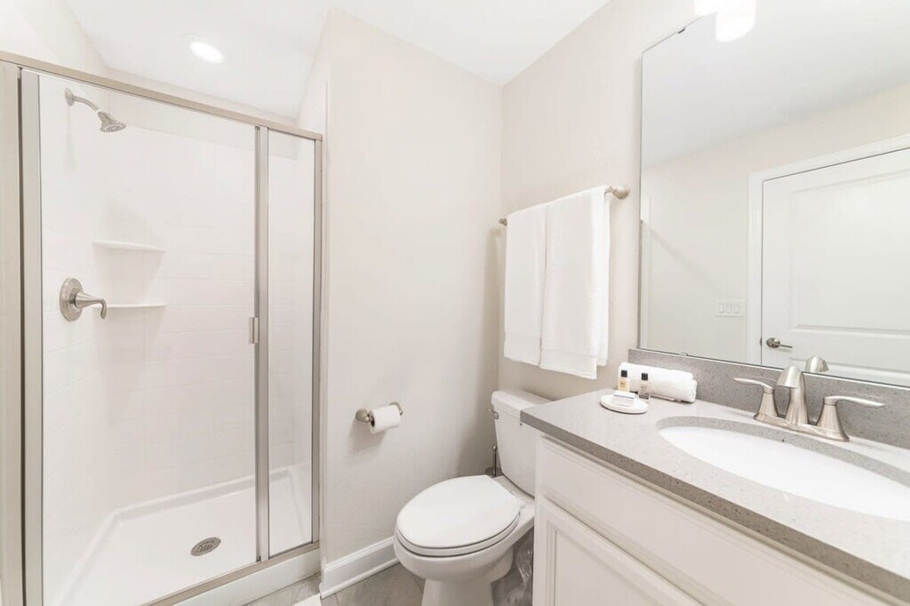 Indulge in the perfect blend of comfort and style in this exquisitely decorated 5-bedroom Storey Lake townhome. Located in Orlando's premier resort and just minutes from Disney parks, this spacious retreat offers accommodation for up to 11 guests. Unwind in the lap of space and enjoy leisure by your private pool. Your dream Orlando getaway is ready and waiting! Experience the ultimate family retreat in this 5-bedroom townhome designed for your comfort. The open layout seamlessly connects the living room, dining area, and fully equipped kitchen, creating an ideal space for gatherings. Step outside to the private patio with a heatable pool, blending relaxation with entertainment. The first floor features a convenient queen bedroom and another room with a double and a single bed, sharing a bathroom. Upstairs, indulge in the restful master king bed suite, another queen bed suite, and the 5th bedroom with 2 single beds and a private bathroom. For added convenience, find a laundry closet with a washer and dryer. Stay connected with complimentary Wi-Fi and enjoy hassle-free parking. A thoughtful welcome kit provides basic bathroom and kitchen amenities, with guests responsible for replenishing them. Pool heating and barbecue grill usage are additional paid services. Situated a mere 10-minute drive from Orlando's major attractions like Walt Disney World, Universal Resort, and Sea World, Storey Lake Resort boasts an ideal location. Unwind and bond with family at the resort's delightful amenities, including a tiki bar, a resort-style pool with slides and a lazy river, sports courts, mini-golf, kayaking, and a fitness center. Nestled just off Osceola Parkway, the resort offers seamless access to dining, shopping, and supermarkets, all within a convenient 5-minute drive. Quiet hours are between 22:00 and 8:00. [SI]