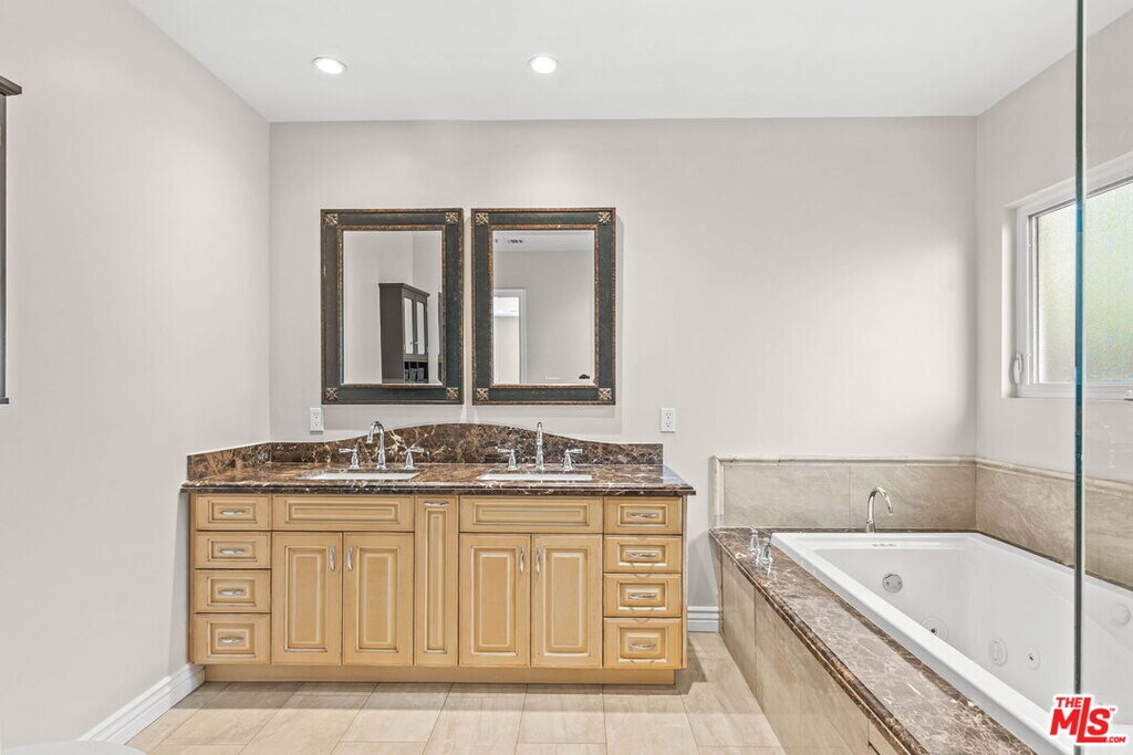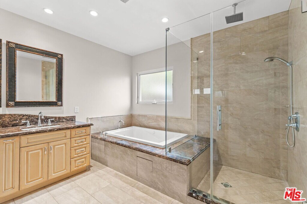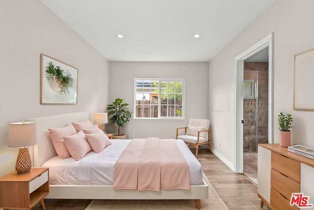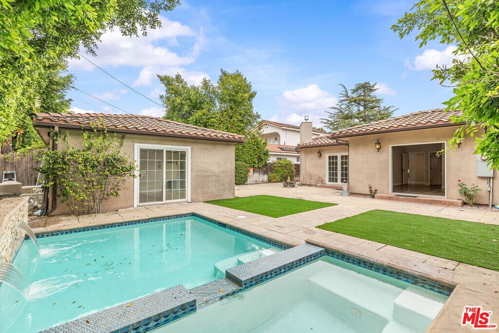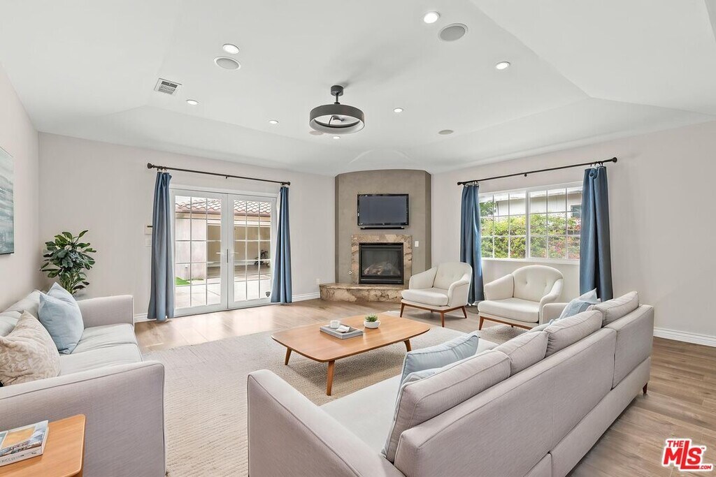 This beautifully maintained 3-bedroom, 3.5-bath single-level home offers a spacious, open layout ideal for comfortable living and entertaining. A large living room and separate family room both with fireplaces flow seamlessly into the dining area and open-concept kitchen. Each bedroom features its own en suite bathroom, while the primary suite opens to a private backyard with a pool, spa, and grassy area. Bright and inviting throughout, the home also includes gated parking and a garage with French doors leading to the outdoor space. MLS# 26699887
