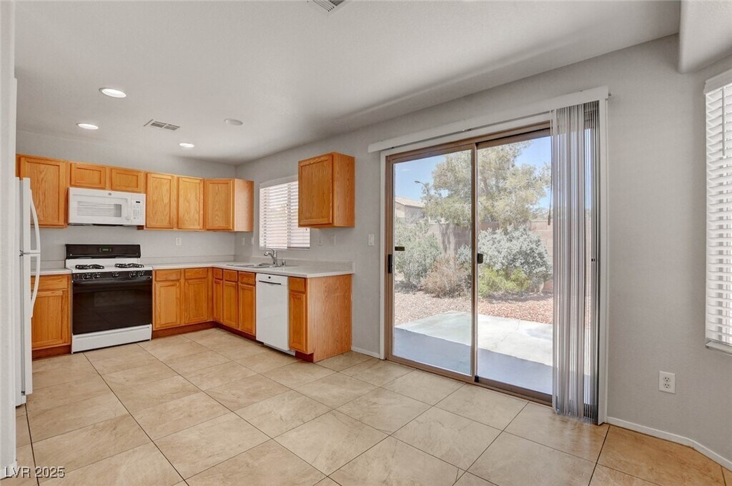 WELCOME HOME ~ 3 beds, 2 baths, 2 car garage, single story gem located in Southern Highlands, spacious layout, living room w/ ceiling fan, kitchen/dining room combo, pantry, white appliances, laminate counters, tile, new carpet, fresh paint, large primary bedroom w/ walk closet, primary bath w/ separate shower, good size 2nd & 3rd bedrooms, washer/dryer, private back yard, located near schools, shopping, dining & entertainment. NO PETS, NO SMOKING.