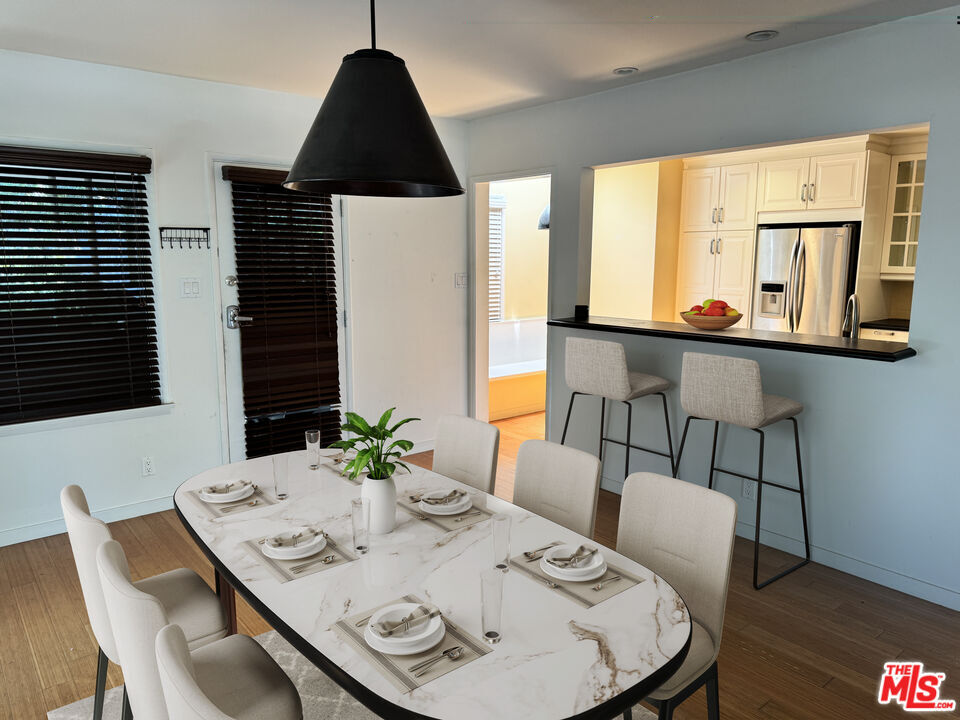 The anchor of this 4 unit property is this 3 bedroom 2 bath home. Light and bright and a floor plan that lends itself to comfortable living. Public rooms look out on the Private front yard. The formal entry and front door face Hesby. The bedroom are adjacent to the back yard. Arched wall that defines the dining room, yet not diminishing the open feeling. Updated kitchen with a breakfast room bench. MLS# 25573287