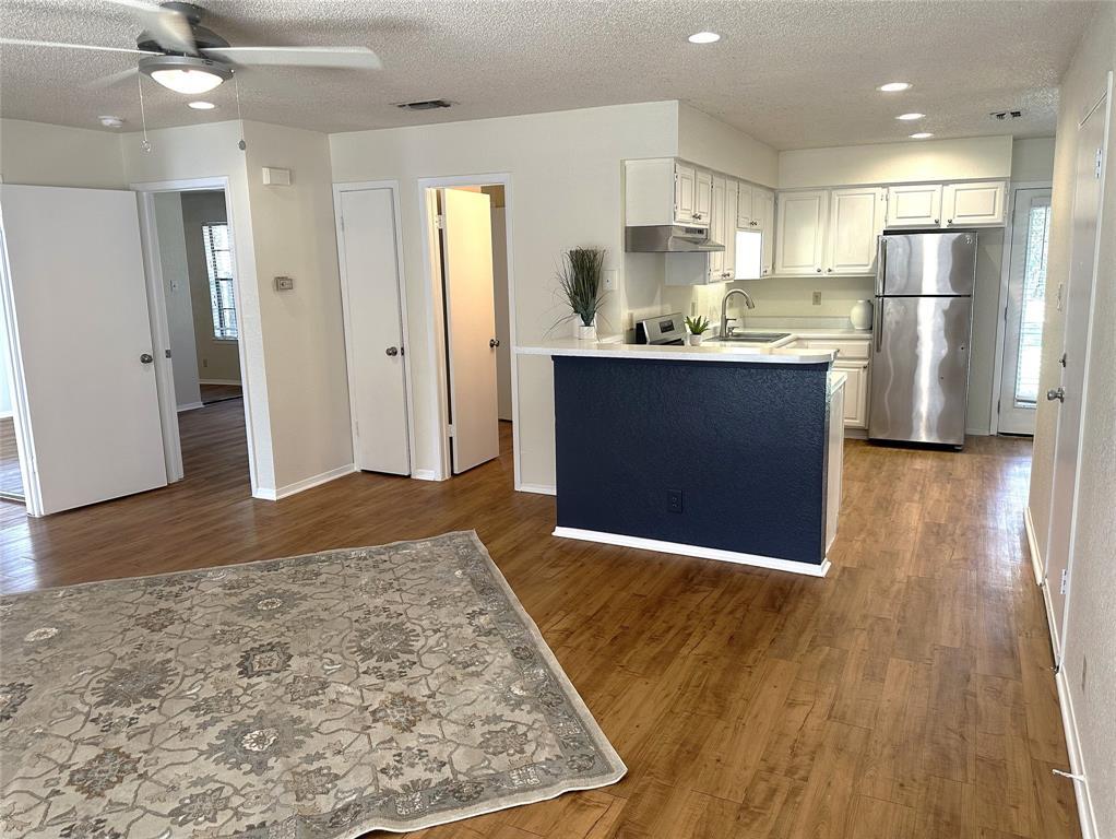 2 BR/2 BA, 1-car garage duplex, 1020sf. (Unit A also available, a mirror image of unit B.) Enjoy lovely upgrades in this attractive, stone-sided unit, with recessed lighting, stainless appliances, refinished counters, vinyl plank flooring, 2†wide blinds, and contemporary bath, kitchen, lighting, and fan fixtures. Interior and exterior paint accents add elegance. Fireplace for winter warmth and ambiance. Roof and gutters all new in 2023. Large front yard, and extra spacious, fully fenced, backyard, with mature trees supply provide shade and park-like atmosphere. Local schools: McCoy Elementary, Forbes Middle School, and Georgetown High School. Pets allowed – non-aggressive breed and weight restriction. Vacant, so no appt necessary. (Photos are a mix of unit A and identical unit B.) AGENTS: LOCK DOORS AFTER SHOWING. See docs for required app & SUPRA lockbox.