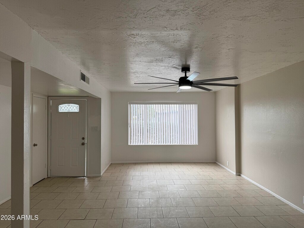 Beautifully updated 5-bedroom home located in Tempe with spacious living areas and modern upgrades throughout. Tile flooring runs through all main living areas and walkways,while the bedrooms feature brand-new laminate flooring. This home offers a large family room,living room,dining room,and breakfast roomproviding exceptional space for both daily living and entertaining. The updated kitchen includes new quartz countertops,a stylish new backsplash,and updated appliances. Washer and dryer are included. Recent improvements include fresh interior paint,new bedroom flooring,new windows in most bedrooms,new blinds in all rooms,and ceiling fans throughout. The property is vacant and will be move-in ready for February time frame