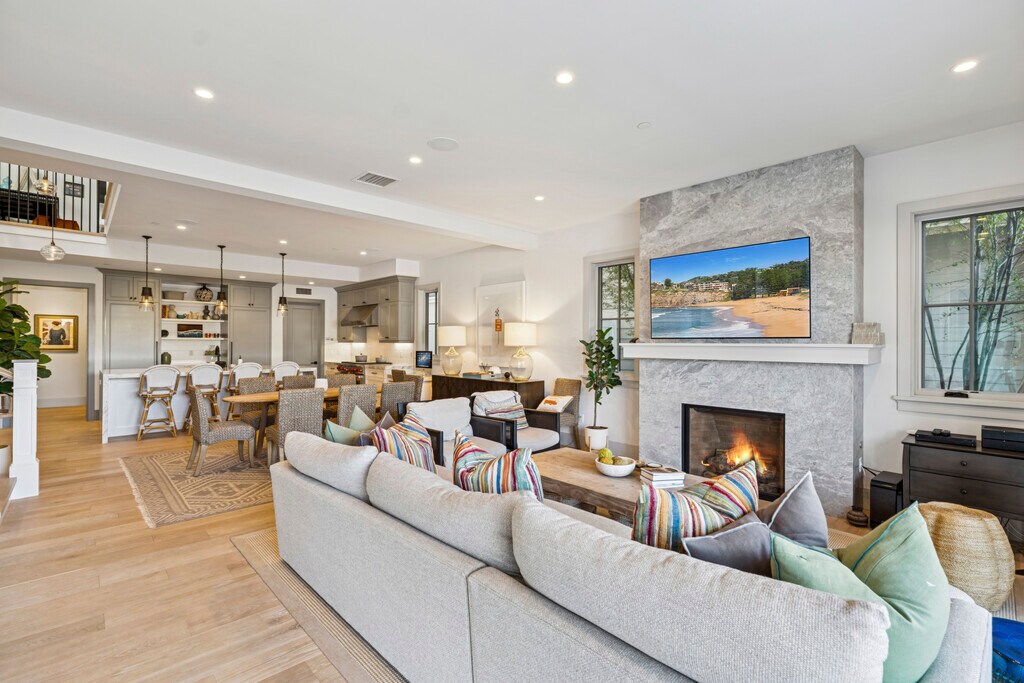 Tranquil seaside living awaits at this remarkable Peninsula Point furnished lease opportunity. 503 L Street is located within just a few houses of the bay and just a quick stroll to the ocean. Upon entry, a California coastal farmhouse vibe can be felt throughout the main level great room, offering a large open floor plan and high ceilings. The residence spans 3 levels and offers four bedrooms and four and a half bathrooms. Every detail has been carefully considered and hand-selected, from the location of the elevator, to the marble counter tops, and oak wood floors. The gourmet kitchen features an abundance of custom cabinetry, Wolf appliances, and a Sub-Zero custom panel built-in refrigerator. The private primary retreat boasts a cozy fireplace, view balcony, and a beautiful large bathroom. A third floor “California Room” provides the ideal entertaining space, complete with a wet bar and access to the roof top deck. It is the perfect place to enjoy the ocean breeze while taking in the city lights and views. A 2-car garage completes this one of a kind furnished lease opportunity.