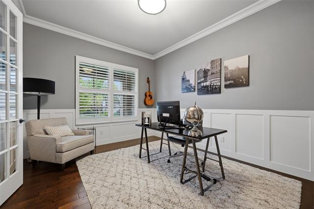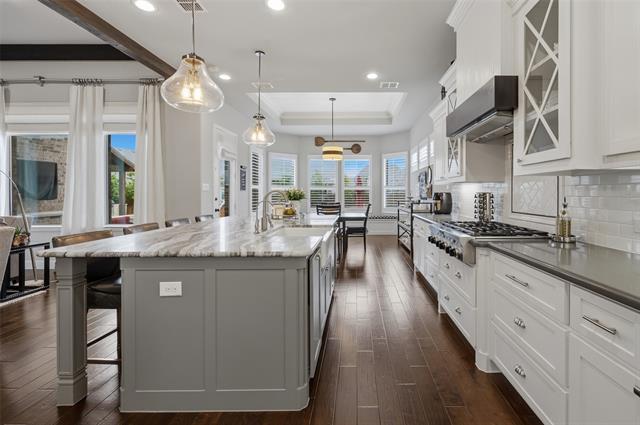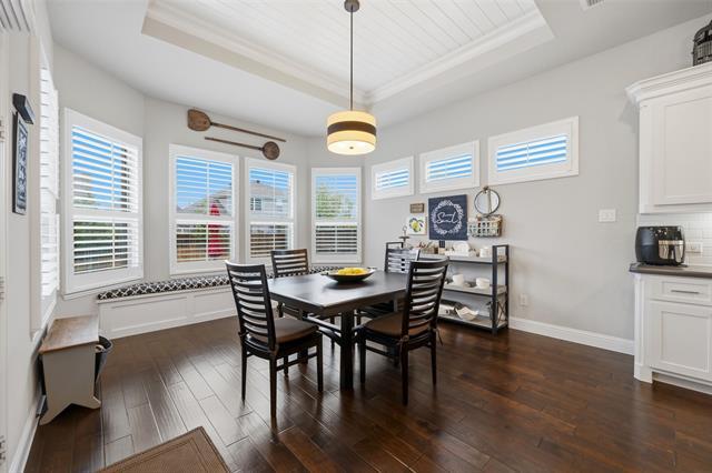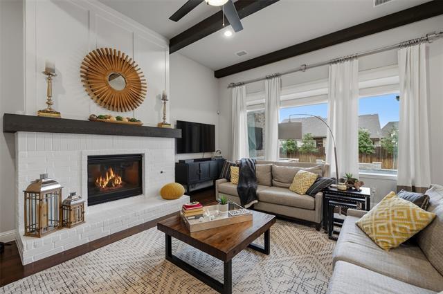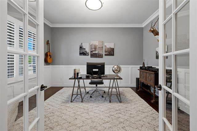 This custom-built home is a true standout, offering timeless elegance, luxury and functionality and lots of extras. Inviting entry with rich hardwood floors, detailed millwork, and designer lighting sets the tone for this beautifully appointed home. Exceptional outdoor living with a resort-style pool and expansive patio that offers multiple seating areas. Covered outdoor living with vaulted wood beam ceiling, built-in grill station, perfectly designed for year-round entertainment with convenient pool bath providing easy access for guests. A private study with French doors and custom wall detailing offers a quiet workspace and has F5 storm shelter in the closet. Formal dining room provides an elegant setting for gatherings. The open-concept living area features soaring ceilings with exposed wood beams, abundant natural light, and a beautiful fireplace. Seamlessly connected, the chef’s kitchen is equipped with an oversized island with quartzite countertops, stainless steel appliances, gas range, double ovens and custom cabinetry—perfect for both everyday living and entertaining. The adjacent breakfast area is filled with windows and overlooks the backyard, creating a bright and welcoming space to start the day. The spacious primary suite with tray ceilings offers a peaceful retreat with room for a sitting area. The spa-inspired bath is beautifully appointed with dual vanities, freestanding soaking tub and walk-in shower. Generously sized walk-in closet with built in shelves and drawers. Secondary bedroom is located on the main floor with an ensuite bathroom. Spacious utility room with built-in cabinetry, sink and extensive counter space. Upstairs offers a spacious game room and dedicated media room with built-in cabinetry and wet bar, ideal for entertainment. Three additional bedrooms and two full baths provide flexibility and comfort for family and guests. The home features a whole home generator.