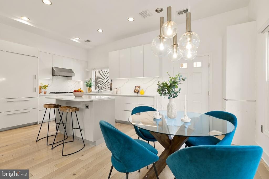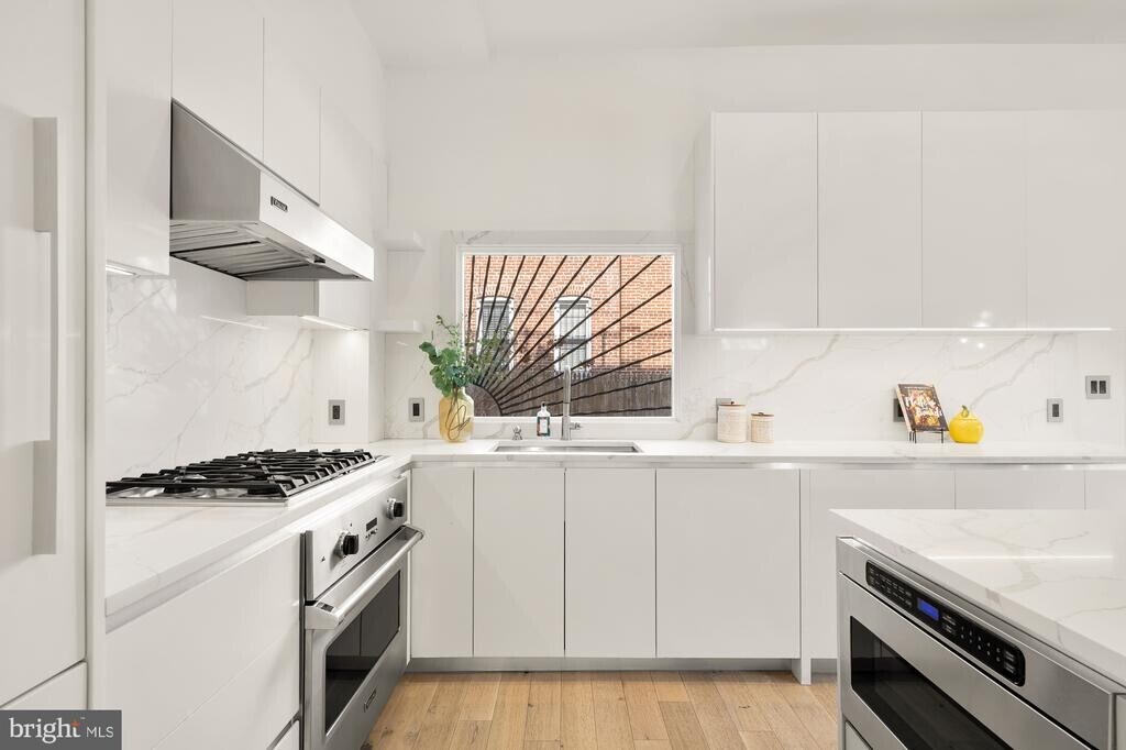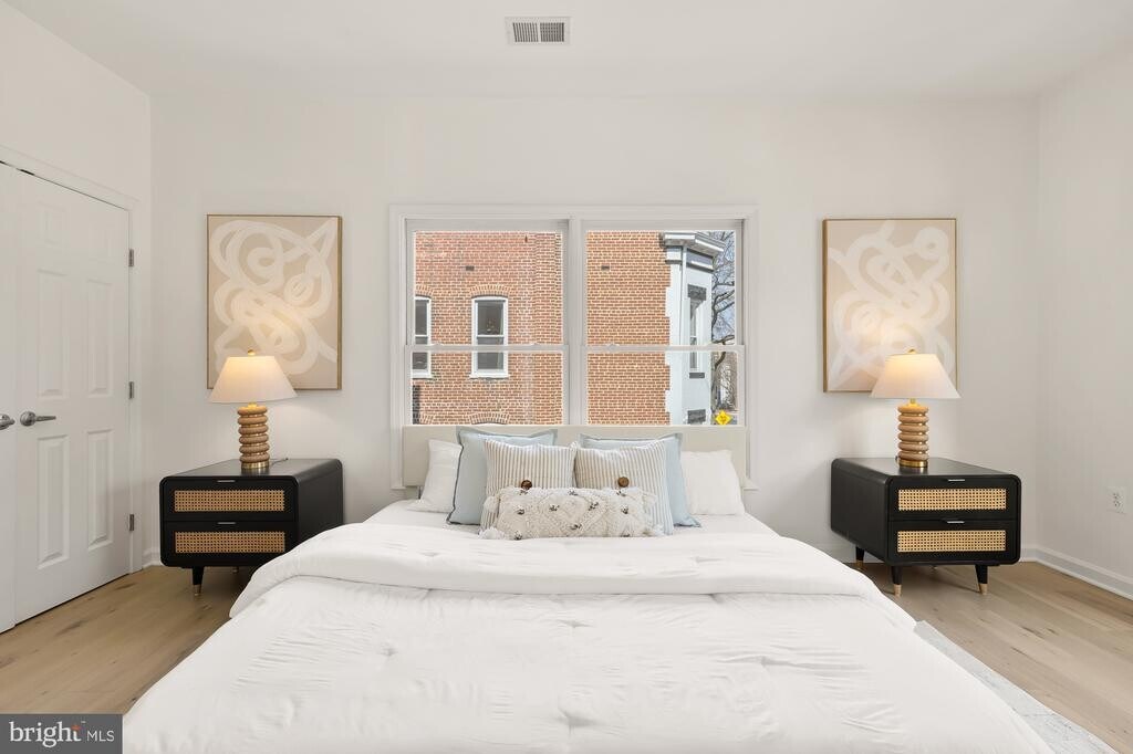 Rare 4BD/3.5BA corner unit home in Shaw! What distinguishes this stellar Shaw residence from the rest? A huge footprint (over 2,600 est. SQ FT - all above grade); a massive, 360-degree roof deck with views of the Capitol (fit for gorgeous sunsets and epic gatherings); a gated parking space; and a sun-soaked end-unit layout with high-end fixtures and European flair. Enjoy high ceilings, abundant windows, and beautiful hardwood floors throughout this enormous 3-level home, with all 4 bedrooms (plus office den area) spacious enough to accommodate all of your living needs. The main level charms with its fireplace and immaculate top-of-the-line, gourmet chef's kitchen, complete with integrated Sub-Zero fridge, Viking range and microwave, Miele dishwasher, an integrated wine fridge and a large island with plenty of clever storage. On the second floor, you will find two large bedrooms with ample closet space and a full bath. On the third floor, you will enjoy two large bedrooms and two full baths. The primary bedroom area has a spacious footprint with a gorgeous en-suite primary bathroom (fully renovated in 2024), a large, custom California Closets walk-in closet and a whole separate office space area with built-in bookshelves. Conveniently located nearby some of DC's best dining, nightlife and culture, the Boundy Dog Park, grocery stores, and two metro stops, this exceptional, one-of-a-kind home will serve its next owner well for decades to come.