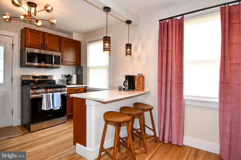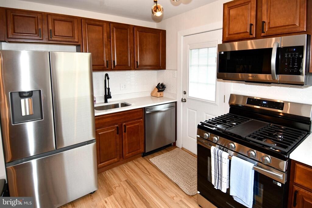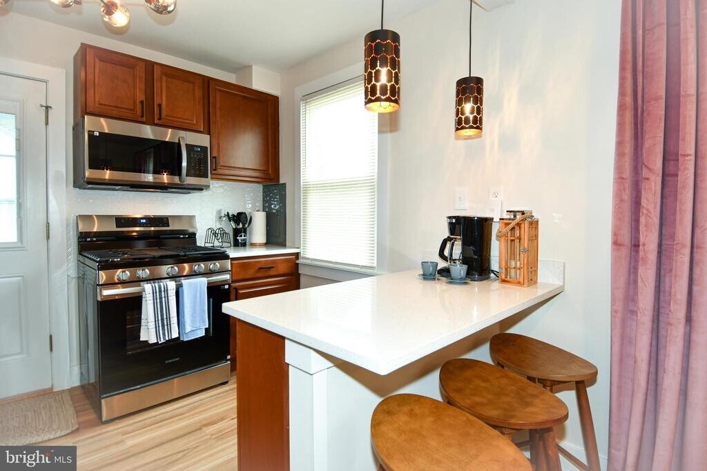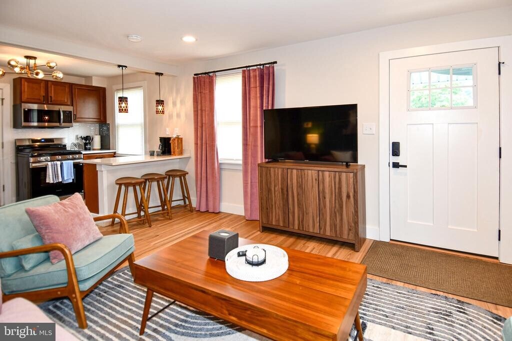 Welcome to 503 Woodston Rd in Rockville, a beautifully renovated single-family home featuring brand-new everything: kitchen, flooring, bathroom, lighting, siding, HVAC, hot water heater, appliances, and washer/dryer. This stylish three-bedroom, one-bath home is fully furnished and ready for move-in. The bright open layout offers a modern kitchen with stainless-steel appliances and quartz countertops, a comfortable living area with designer decor, and abundant natural light throughout. Enjoy outdoor living with a large private patio, newly installed front and rear fencing, and your own driveway for easy parking. Conveniently located near Rockville Town Center, Rockville Metro, parks, shopping, and dining.