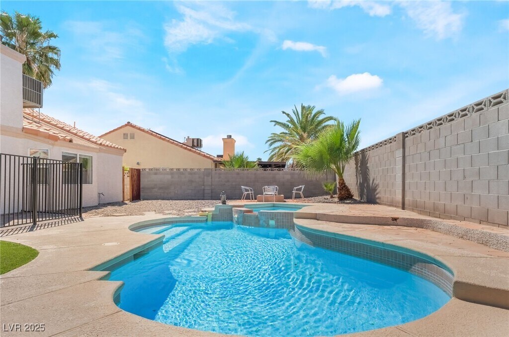 Experience resort-style living in this beautifully upgraded 3-bedroom, 2-bath home located in the heart of NW Las Vegas. The backyard is an entertainer’s dream and your own private oasis, featuring a large heated pool & spa, a brick paver patio area, firepit with seating area, and low-maintenance desert landscaping and artificial turf—all set on an oversized lot. The interior features a bright, spacious living area that flows seamlessly into the dining space and kitchen, ideal for gatherings. Enjoy an open-concept layout with high-end vinyl plank flooring, new plush carpet, and fresh two-tone paint throughout. The large primary suite offers a luxurious escape with a custom shower adorned with luxury designer tile and stone. Additional highlights include stainless steel appliances, gated RV parking area, newer HVAC system, 2-car garage with storage. Prime location near shopping, dining, parks, and freeway access. This turnkey home combines comfort, style, and convenience—don’t miss it!