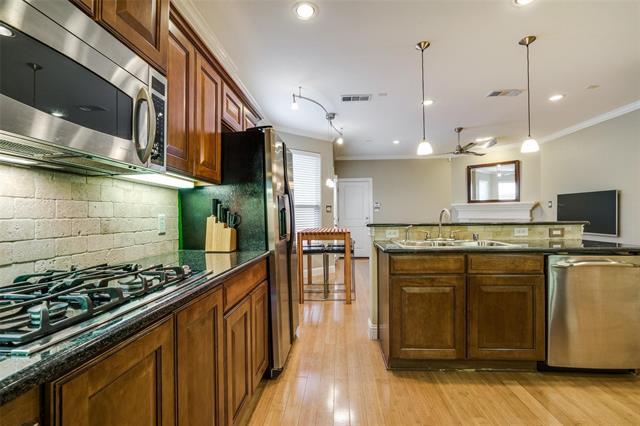 Beautiful, two-story, 3 bedroom, 2.5 bath single family attached in Cochran Heights near the Knox-Henderson restaurants & retail. Kitchen features granite counters, large island, stainless appliances & dark wood cabinets, and opens to the living room with gas fireplace & wet bar. Large master suite has dual sinks, jetted tub, separate shower & walk-in closet. Front & side balconies & covered patios. 2-car garage & driveway with gated entrance. Refrigerator, washer and dryer included. Close commute to Uptown and Downtown.