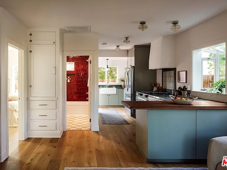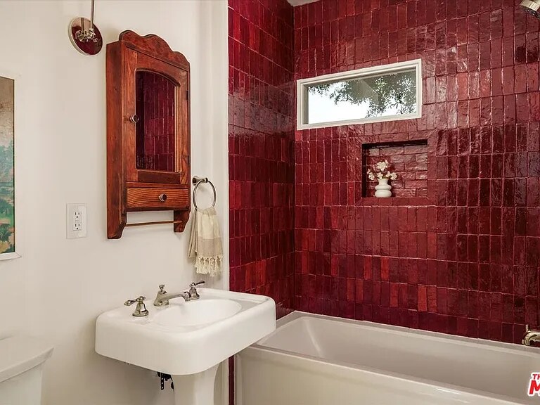 Property Id: 2212442 LOCATION LOCATION LOCATION! This completely renovated 1 bedroom, 1 bath designer bungalow exudes charm and luxury, located in the heart of Eagle Rock - two blocks from Trader Joe's and a block from historic Colorado Blvd with restaurants, coffee shops and more! Oak floors guide you through airy living and dining spaces into a green-hued kitchen with dramatic Laguna Bay quartzite counters and custom-built walnut butcher block. Gorgeous imported 1970s Slovenian clear-glass light fixtures and custom cabinetry feature a hidden side-by-side washer/dryer, LG refrigerator, bespoke oven and a skylight, bathing the space in natural light. The bedroom, illuminated by a striking 1920s Art Deco skyscraper light fixture, offers a calming garden view, while the bath pairs creamy-toned checkered tile floors with a bold shower lined in crimson Zellige tile. It has it's own private outdoor retreat -- an enchanting garden with a brick patio for dining under the stars. Welcome home!