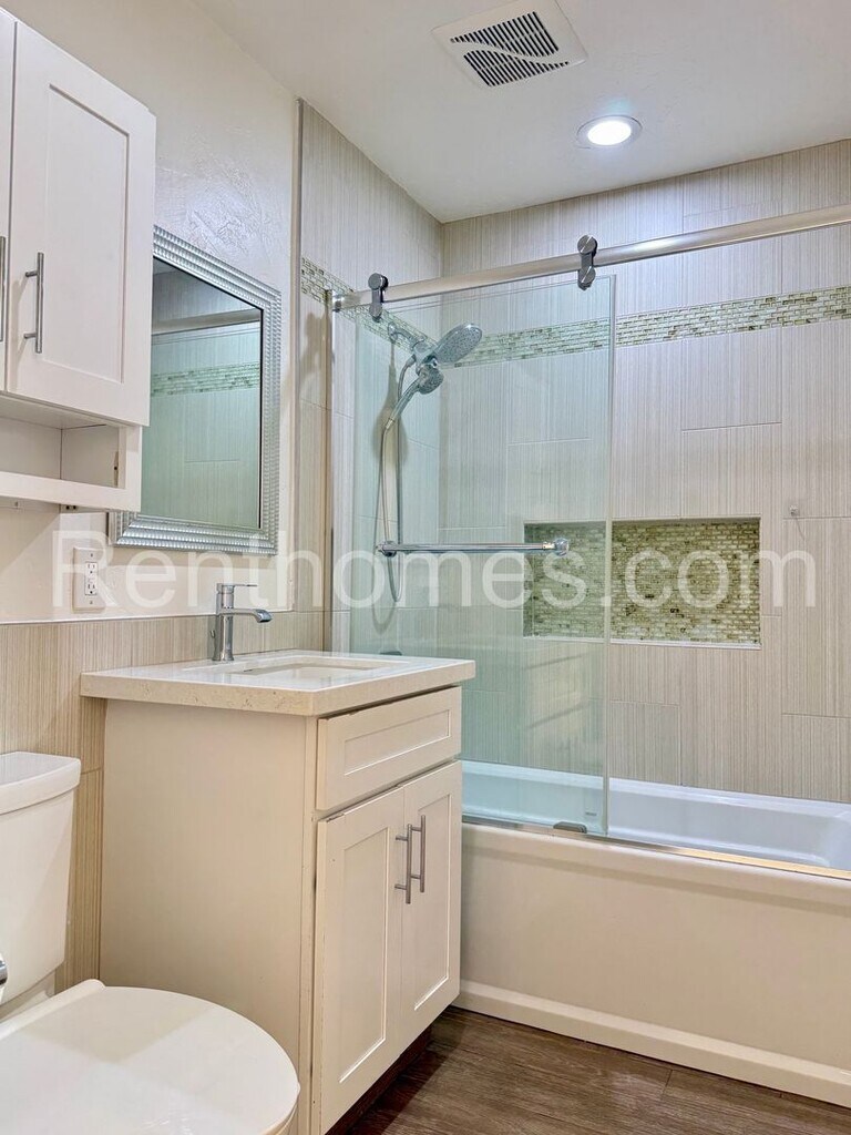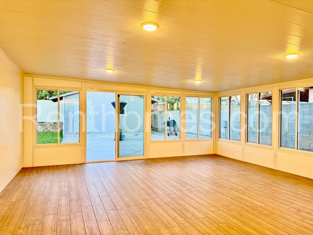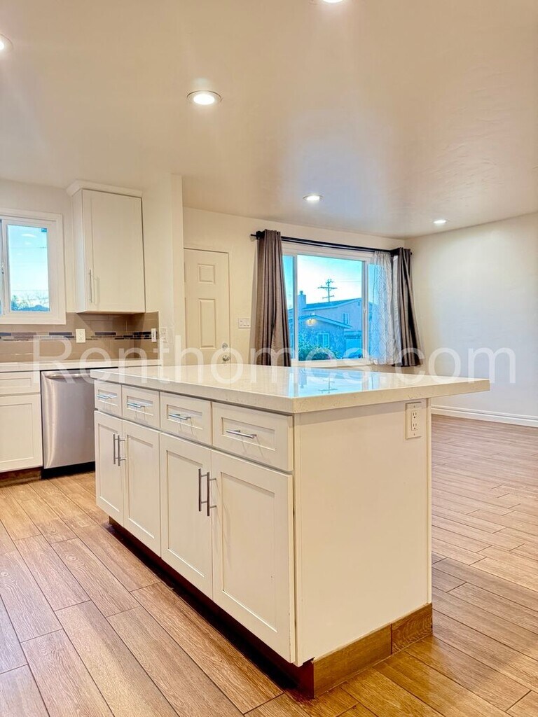 Welcome to Clairemont, 5034 Baxter, a beautifully remodeled single-level home located in the heart of San Diego, CA. This home boasts four spacious bedrooms, all featuring mirrored wardrobe doors, and two full bathrooms. The primary bedroom's bathroom is equipped with a walk-in shower for your convenience. The fourth bedroom is unique with faux wood luxury vinyl plank floors and a mini split heat and AC system. The house is adorned with faux wood porcelain tile floors in all other rooms, adding a touch of elegance to the space. The kitchen is a chef's dream with a center island, quartz counters, and recessed lighting. The large enclosed patio, complete with faux wood porcelain tile floors, recessed lighting, and a wall AC "as-is", is perfect for entertaining or relaxing. The property also includes a large fenced rear yard with automatic sprinklers, maintained by an included gardener. Additional amenities include a microwave, refrigerator, dishwasher, gas stove, full-size washer and dryer "as-is" and central AC. The house, built in 1952, has been updated with dual pane windows and off-street parking is available. Please note, no pets or co-signers are allowed. For a closer look, a virtual tour is available on the American Heritage Properties website. If you are interested, please drive by the home to see if the location and neighborhood meet your needs, then call American Heritage Properties at and we will be happy to set an appointment to show you the home. To see our complete listings or to apply now visit our website at For a Virtual Tour Go to the Website for American Heritage Properties, Click on or copy and paste the link to view a 3D Virtual tour of this property at:
