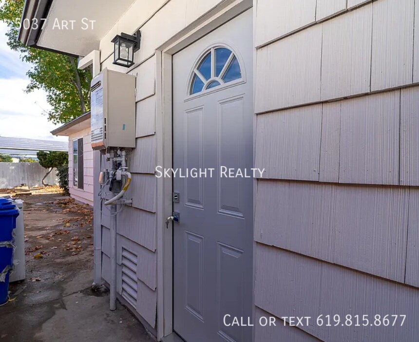 Now Leasing for 2026! Welcome to 5037 Art St – A compact 2 bedroom, 1 bathroom unit, walking distance to SDSU Book a Tour: We'd love to show you around! Call us at to schedule a tour. Property Features: -2 beds / 1 bath -Upgraded dorm-style living -Private entrance -AC -In unit washer/dryer -Dishwasher -All new appliances -Rainfall shower head -Walking distance to campus -Rooms each fit a queen bed and small desk -Large closets in bedroom Lease Terms: -12-month lease period -No pets allowed. Service animals and ESA's exempt -$43.60/month per household fee for trash. -All utilities separate from rent. Tenants set up and pay for their own electricity and wifi. $75/month per tenant flat fee for water, sewer, gas & technology fee. -Street parking APPLICATION PROCESS: 1. All tenants (and co-signers, if applicable) must complete an application. 2. Once approved, a $1,000 initial holding deposit is due to reserve the unit and begin lease preparation. 3. The remainder of the security deposit must be submitted within 1 week or by the due date listed on the lease agreement. 4. Applicants must show a minimum monthly income of 2.5x the rent and a credit score of 650 or higher. Guarantors/co-signers are accepted. Follow Us: Stay updated with more listings by following us on Instagram: @aztec.living Listed by Skylight Realty DRE# 02222135