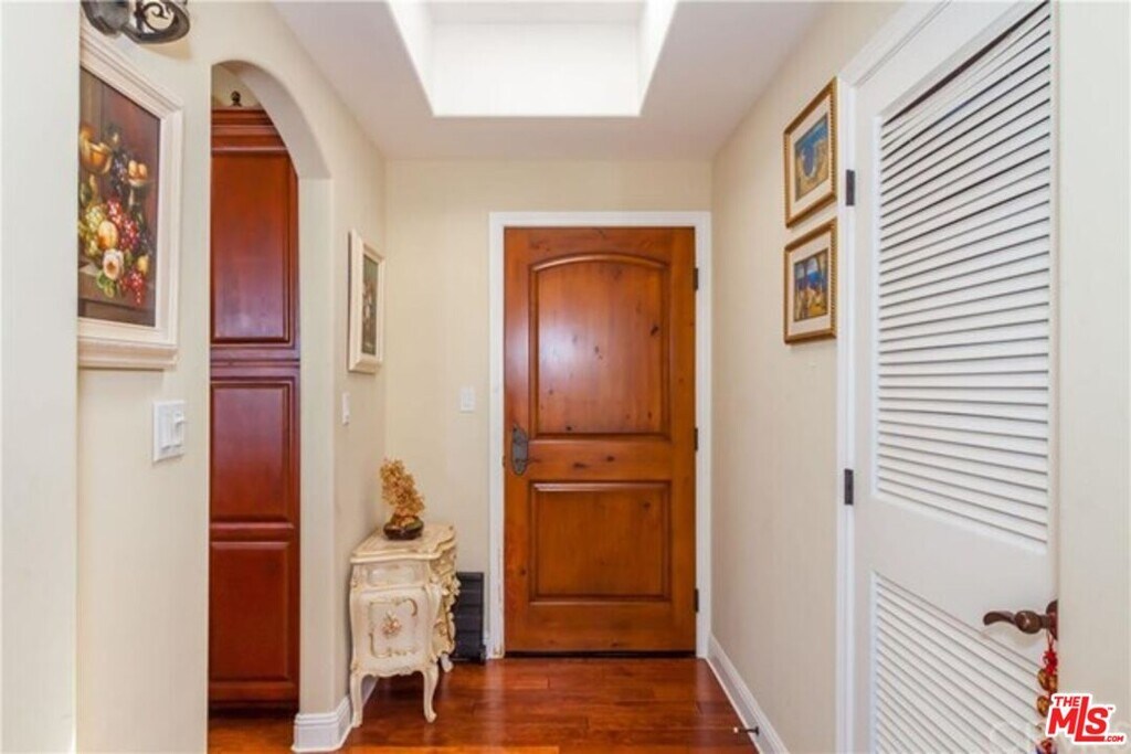 This prime top floor corner penthouse with 2 bedroom and 2 full baths with rustic maple hardwood floors and berber carpeted bedrooms, soaring high ceilings in master bedroom and living room with striking bright skylights. Spacious and open with private balcony. Stainless steel appliances, absolute black granite countertops, custom cherrywood cabinets and washer/dryer in unit. Walk in closets. meticulous grand entryway opens to ovely and private courtyard featuring fountains and gardens. Close to Larchment Village and Paramount Pictures. Must see!! MLS# 25575639