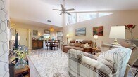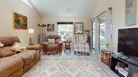 This charming 966-square-foot, villa-style ground-floor unit offers a comfortable and thoughtfully designed living space. Featuring two spacious bedrooms and two bathrooms, the home boasts vaulted ceilings that create an open, airy atmosphere. Wood laminate and ceramic tile flooring run throughout the unit, adding style and ease of maintenance. The well-appointed kitchen includes a large window, ample counter and cabinet space, a breakfast bar, and a convenient pass-through to the dining area. The open-concept living and dining room flows seamlessly into a cozy lanai—perfect for relaxing or entertaining. Both bedrooms are generously sized, with the primary bathroom featuring a glass walk-in shower and the second bathroom offering a tub-shower combination. Additional features include a laundry closet with washer/dryer hookups, ceiling fans, and numerous updates throughout. Outside, enjoy the convenience of an attached carport with one designated parking space, surrounded by mature shade trees. Community amenities include a clubhouse, a heated pool, and tennis courts. 3D Tour: Don't miss the opportunity to make this beautiful property your new home—schedule a viewing today!