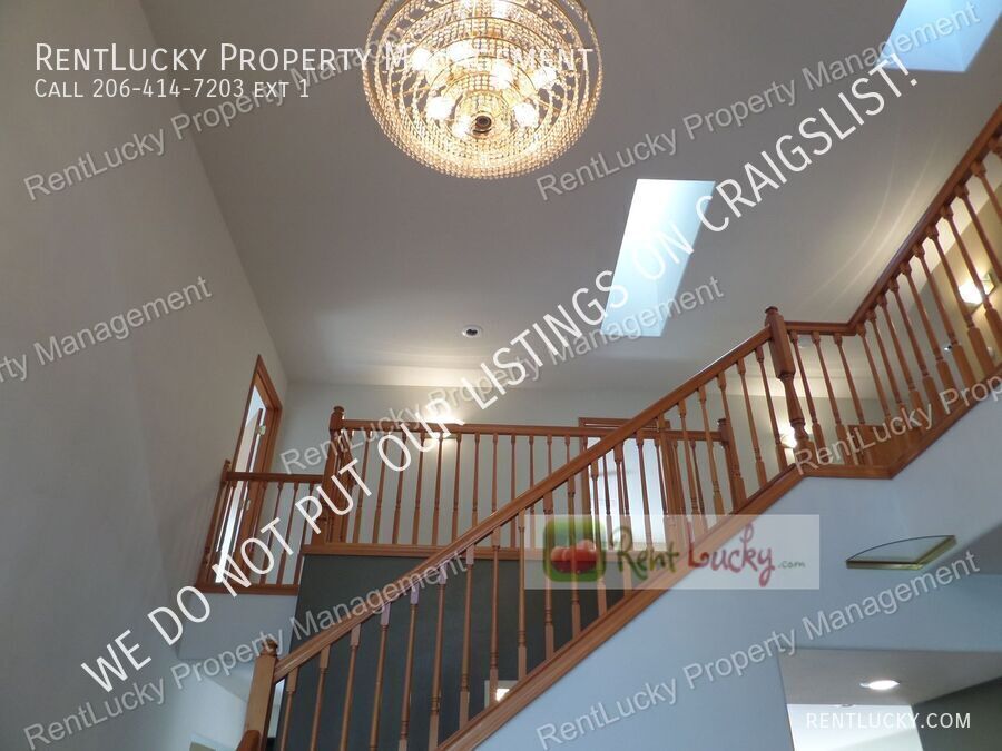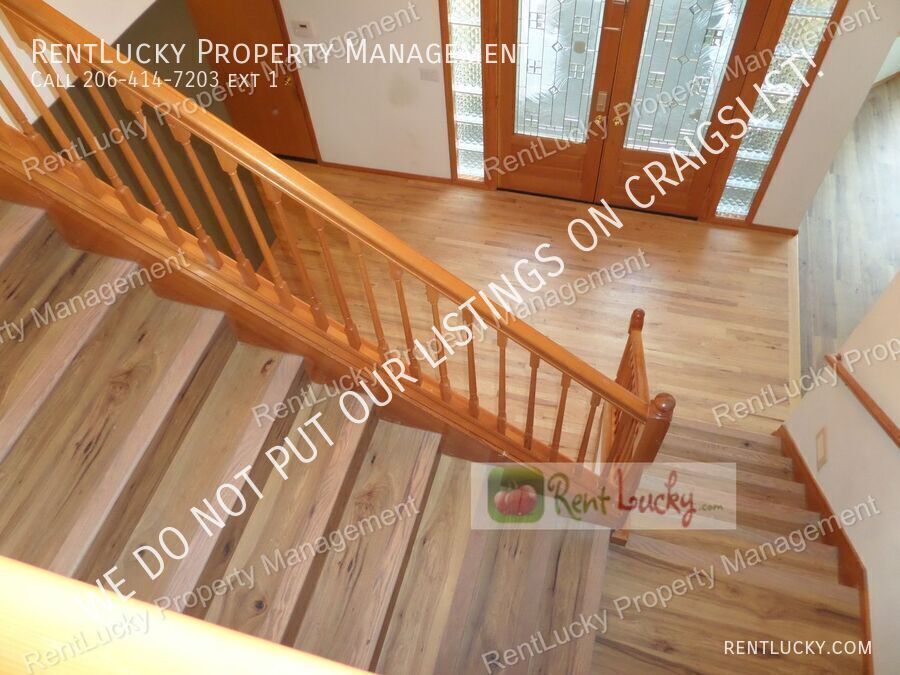 Looking for tons of space and a super-cool yard for entertaining? This dreamy home features over 4500 square feet, and has hard-surface flooring throughout the entire home (even the stairs)! As you walk into this incredible home, you're greeted with an stunning custom open staircase and a beautiful chandelier. The massive kitchen has abundant cabinet space and features solid surface counters, stainless steel appliances, an island and gas range. On the main level you'll also find a formal living room, formal dining room and sizable den that could easily be used as a bedroom. There is a 3/4 bath on the main level for ultimate convenience! The primary suite is enormous and features a walk-out balcony, soaking tub, walk-in closet and double vanity. There are 3 more generous bedrooms upstairs, one of which has an ensuite bathroom. In addition, there is a sizable den or 5th bedroom upstairs (no closet). The backyard is perfect for entertaining, with 2 covered deck areas, basketball court, a putting green and a super nice built-in barbeque hub. In addition to all that, there is a cute MIL unit downstairs with its own kitchen and separate entry, perfect for extended family, a roommate, or a guest suite. The oversized 2-car garage has tons of shelving storage, and there is abundant parking in front of the home. This location can't be beat! 3-5 minutes to parks, soccer fields, South Center Mall, Costco, Safeway, dining, LA fitness, and just 2 minutes from I-5 and I-405. All appliances provided, including washer and dryer. Tenant to pay all utilities. Make an appointment to view this spectacular home today! Sorry, no pets. BEWARE OF SCAMMERS! If you see a Craigslist OR Facebook Marketplace ad for this house at a lower price or an ad that does NOT mention RentLucky Property Management, SCAMMERS have posted the other ad. RentLucky does NOT put our listings on Craigslist NOR Facebook Marketplace. If you have been dealing with a SCAMMER, please reach out to RentLucky immediately at . TIPS & TRICKS to a Successful Leasing Experience with RentLucky! ARRANGE A TOUR: Visit our website at