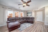 *UNFURNISHED* ALL FURNITURE SHOWN ON PICTURES HAS BEEN REMOVED. NO CARPET. Step into comfort and relaxation at this charming and tastefully updated home! This cozy gem is located on a spacious corner lot and backs up to beautiful BLM land, providing the ultimate in privacy and serenity. Featuring 2 bedrooms and 2.5 bathrooms, this home boasts newer luxury vinyl planks and tile flooring throughout, ensuring low maintenance and ease of cleaning. The stylish and functional kitchen is equipped with granite countertops, a breakfast bar, and ample cabinet space, making cooking and entertaining a breeze. Unwind in the relaxing loft or enjoy the cool breeze with ceiling fans throughout the home. The low maintenance landscaping and professionally installed turf makes outdoor living effortless, while the tandem garage with storage provides ample space for all of your vehicles and belongings.