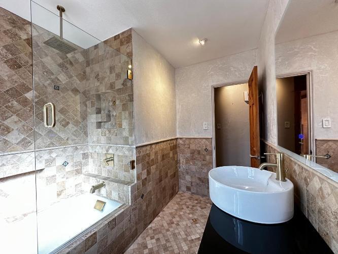 Beautiful Pueblo style home with 3 bedrooms,one full bath and one half bath. Nice hardwood floors in living room,dining area and 2 of the bedrooms. One of the bedrooms has a Murphy bed! Full bathroom has been updated,and half bathroom has the washer and dryer. Large built in office comes as a bonus! 2 tier back yard is ready for gardening and relaxing under the pergola.