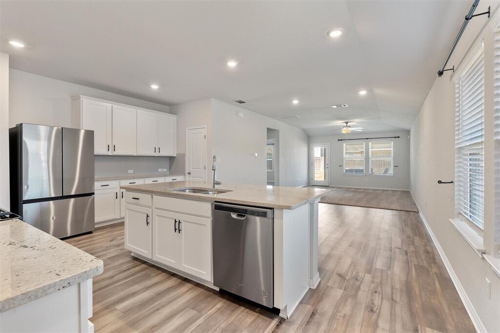 Welcome to 504 Longmount Cove in the beautiful Butler Farms community of Liberty Hill, Texas. This modern single-story home features 3 bedrooms, 2 bathrooms, and an open 1,509-square-foot floor plan designed for both comfort and style. Built in 2022, the home offers a bright and airy layout with a spacious kitchen that includes a large island, pantry, and stainless steel appliances — plus a gas stove perfect for cooking enthusiasts. The inviting living area flows seamlessly into the dining space, making it ideal for both everyday living and entertaining. Located in the scenic Butler Farms neighborhood, residents enjoy access to peaceful walking trails, fishing ponds, and stunning Hill Country views that make this community truly special. The home sits on a desirable corner lot with a private fenced yard, a two-car garage, and a covered front entry. Washer, dryer, and refrigerator all stay with the home, adding convenience for new tenants. Just minutes from Liberty Hill High School and within the highly rated Liberty Hill ISD, this home offers the perfect blend of small-town charm and modern convenience. With quick access to Highway 29 and US-183, you’re close to shopping, dining, and all the best of Liberty Hill living. Pets are welcome, and the home is move-in ready for those seeking comfort, community, and connection to nature.