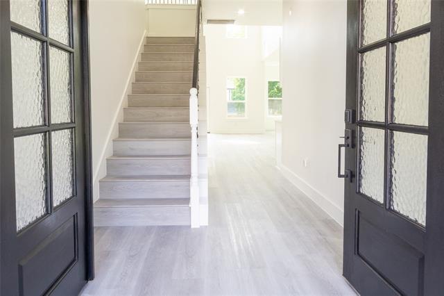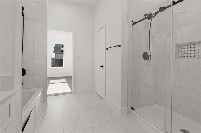 <1000 ft. from The Historic McKinney Square! Discover modern comfort and timeless charm in this brand-new home perfectly positioned in the heart of Downtown McKinney’s Historic District. Enjoy the best of both worlds—peaceful residential living with walkable access to McKinney’s shops, dining, parks, and year-round events. Step inside to an open, sun-filled floor plan featuring a chef-inspired kitchen with quartz countertops, stainless steel appliances, and a sleek galley-style island perfect for cooking or entertaining. Durable luxury vinyl plank flooring flows throughout, paired with beautifully designed, tiled bathrooms for a cohesive, upscale feel. The first-floor primary suite offers double windows, a relaxing jetted tub, a tiled walk-in shower, and a generous walk-in closet. A downstairs guest suite provides flexibility for an office, guests, or multi-generational living. Upstairs, enjoy a spacious second living area with skylights, plus two oversized bedrooms, each with walk-in closets and their own bathrooms—ideal for privacy and comfort. Front and rear patios create inviting outdoor spaces for morning coffee, evening lounging, or entertaining friends. Thoughtful upgrades include an oversized garage, 220V EV charger, spray-foam insulation, a tankless water heater, and rich mahogany doors. This is a rare opportunity to lease new construction just moments from Historic Downtown McKinney—don’t miss it!