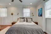 Fully renovated, furnished concrete home with impact windows, just a 5-min walk to dog-friendly Carlin Park Beach with shower access across the community. Light & bright floor plan features a 2nd-floor wraparound balcony with remote canopy and a rooftop deck. Spacious kitchen with quartz counters and upgraded appliances, plus wood flooring in main areas. First floor includes a bedroom, powder room with shower, and laundry room with 2nd-floor chute. Master suite offers a custom walk-in closet and therapeutic king mattress. Upstairs also features a large loft, 3 bedrooms, and a 3rd full bath. Barn door provides privacy between loft and guest rooms. Fully fenced and gated backyard. Tenant pays 13% tax + $200 utility fee.
