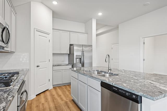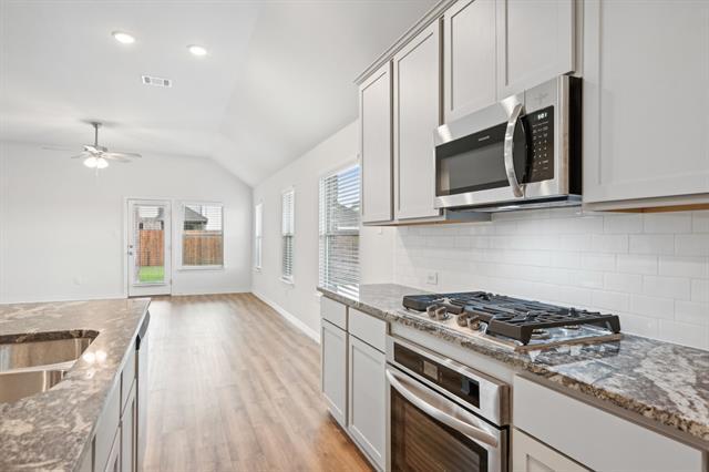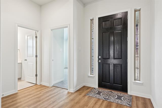 Superb Single-story Brightland home, the Oleander floor plan features 2,211 SF of living space. Gorgeous curb appeal and pristine interiors welcome you home to a wide open floor plan providing ample space for everyday living and entertaining. The entryway with upgraded wood floors and 8' doors creates a dramatic first impression with an expansive view that opens up through to the great room. The full-function island and chef-ready layout with custom cabinets and stainless steel appliances help make this streamlined kitchen delightful. You will love the oversized owner's suite and private bath with double vanity, soaking tub and high-walk in closet. Three additional bedrooms and a study are housed in their own sections making them perfect for kids or guests. Explore the new master-planned community of Hulen trails, with planned amenities for this family-friendly community including an amenity center with sparkling pool, spacious playscapes, winding trails and open green spaces
