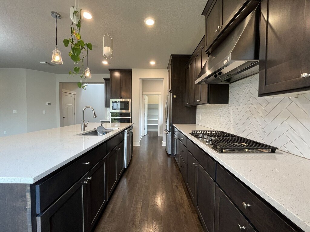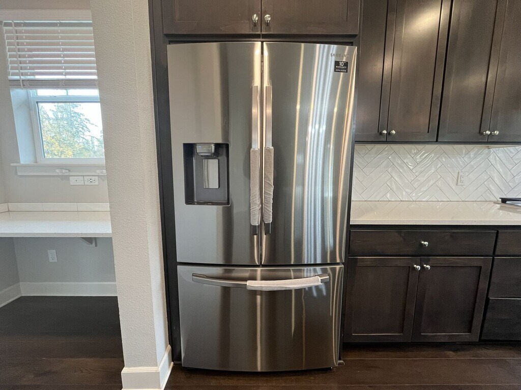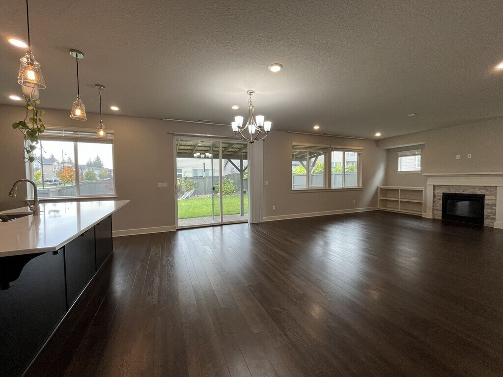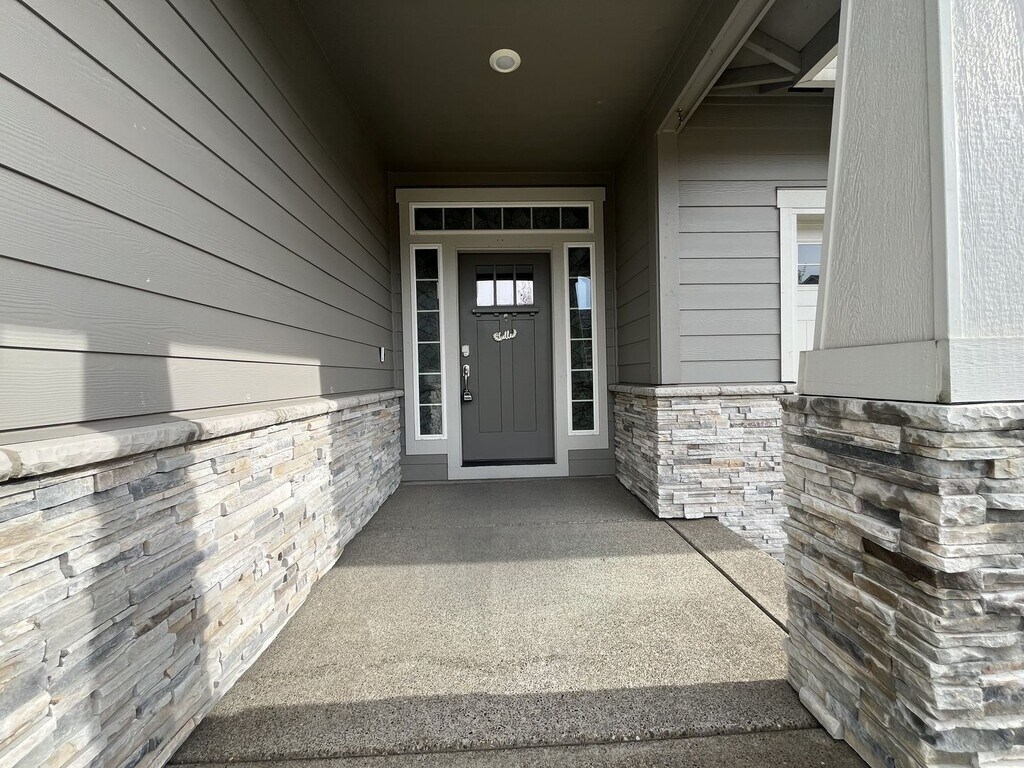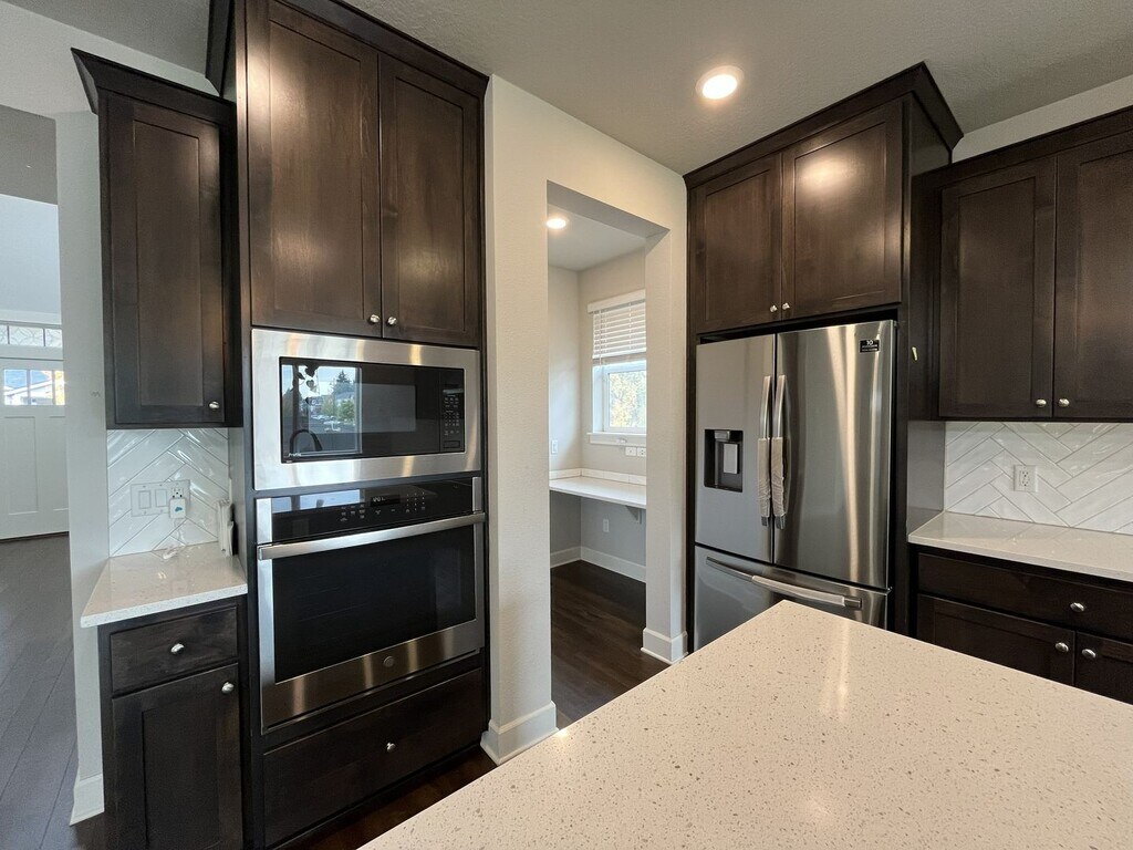 Welcome to this stunning 4-bedroom, 3-bathroom home offering 2,448 square feet of beautifully designed living space on a desirable corner lot. The property features a lush lawn that wraps around the side, manicured bushes along the walkway, and a private driveway leading to a spacious two-car garage. As you step inside, you’re greeted by an inviting entryway with elegant hardwood flooring, a full bathroom, and a main-level bedroom—ideal for guests or a home office. This bedroom features plush carpet, three bright windows, and a sliding door closet. The adjacent bathroom includes a modern step-in shower with glass paneling and stylish tile detailing. The heart of the home is the chef’s kitchen, designed for both style and function. It features a large island bar with seating, a deep stainless steel sink, and a built-in dishwasher. The kitchen also includes a gas cooktop, wall-mounted oven and microwave, a stainless steel refrigerator, and a crisp white tile backsplash. Rich dark wood cabinetry provides abundant storage, while a nearby breakfast nook and walk-in pantry add everyday convenience. The open-concept dining area sits beneath a contemporary pendant light, seamlessly flowing into the spacious living room. The living area features multiple windows that fill the space with natural light, a central fireplace with built-in shelving, and plenty of room for relaxing or entertaining. Upstairs, the primary suite offers a true retreat with large windows, a spa-inspired en suite bathroom, and a walk-in closet. The bathroom includes dual vanities, a soaking tub, and a glass-enclosed shower. A versatile loft area between the bedrooms provides the perfect space for a home office, reading nook, or lounge. Two additional bedrooms upstairs feature generous closets and plenty of light, sharing a full bathroom with a double vanity and combination tub/shower. The upper level also includes a full laundry room with built-in cabinetry and a full-size washer and dryer for added convenience. Step outside to enjoy a beautifully landscaped backyard featuring a long covered patio, manicured lawn, and a rock border with lush bushes along the fence line. A lower patio area adds even more space for outdoor dining, entertaining, or simply relaxing in the fresh air. This thoughtfully designed home combines modern finishes, abundant natural light, and versatile spaces—perfect for comfortable living and entertaining. Call or Text Our Leasing Agent at to schedule a showing! Visit our website to apply and view other homes we have available! Do you need property management services? Maximize your income and cut your costs! YouTube Video URL: