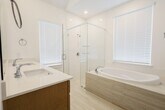Welcome to this stunning Highland Homes Carlton floor plan in Rosenberg’s Brookewater community! This one-story gem offers inviting front and back covered porches,perfect for relaxing outdoors. Inside,a wall of windows fills the open living,dining,and kitchen areas with natural light. The chef’s kitchen boasts a wood-wrapped island,quartz countertops,stainless steel single-bowl sink,two-tone cabinetry,and a built-in dining hutch ideal for storage or a coffee bar. The spacious primary suite is a true retreat with a drop-in tub,glass-enclosed shower,and floor-to-ceiling tile accents.Architectural detailing provides room definition without sacrificing the open flow,while upgraded finishes add modern style throughout. Washer,dryer,and refrigerator are included,making this home fully move-in ready. Combining comfort,elegance,and convenience,this home is ready for you to lease and enjoy today! MLS# 66864681