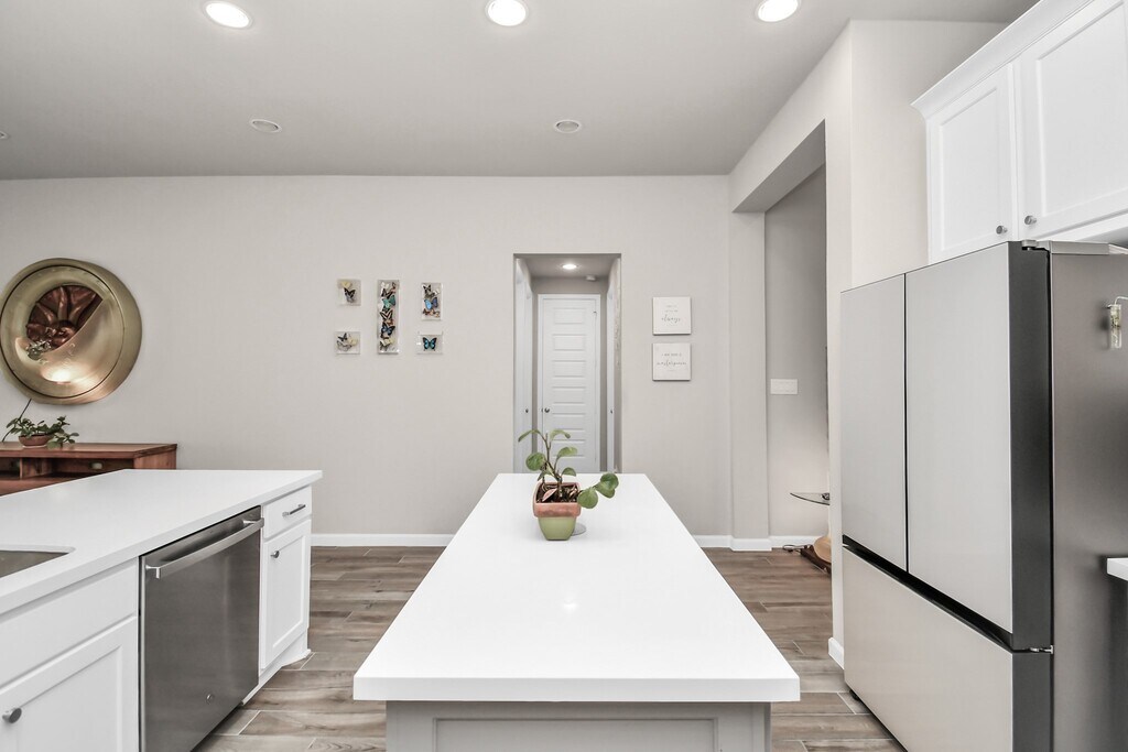 BEAUTIFUL ONE-STORY- 4 bedrooms,3 bathrooms,covered patio,2 car garage is available for LEASE in Meridiana,WASHER,DRYER,FRIDGE included. You will love this spacious home with 12 ft ceilings in the kitchen and 10ft ceilings throughout! Quartz countertops,a kitchen island with extra outlets,the island has it's own cabinets allowing for ample storage space. Retreat in the spacious primary bedroom with an ensuite bathroom which includes dual sinks & vanities,an oversized shower,a soaking tub & walk-in closet! Enjoy entertaining in the backyard with a covered patio and an abundant back yard! Save money while renting with this energy-efficient home. Smart-tech features such as a camera doorbell and keyless entry provide safety and security. Residents of Meridiana can enjoy resort-style amenities such as a waterpark/ pool,clubhouse,walking trails,and onsite schools. Schedule a showing today. MLS# 54069536