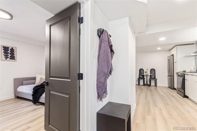 A fully renovated and furnished bottom floor of a home with a private entrance. This space features new flooring, fresh paint, and updated lighting throughout. The beautiful, fully stocked kitchen comes with all new appliances and includes a cozy dining area with a TV. There are two bedrooms with ample closet space and one fully remodeled bathroom. A new washer and dryer are provided, and all utilities and internet are included. The property offers ample parking with a long driveway, extra back space, and an optional one-car garage for $150. Located in the quiet Berkeley district of northwest Denver, you'll enjoy nearby fast-food eateries, trendy coffee shops, and specialty stores along Tennyson Street. Plenty of outdoor activities at Berkeley Lake Park and Rocky Mountain Lake Park, including fishing, hiking, sports courts, and kayaking Single Family Residence MLS# 4134503