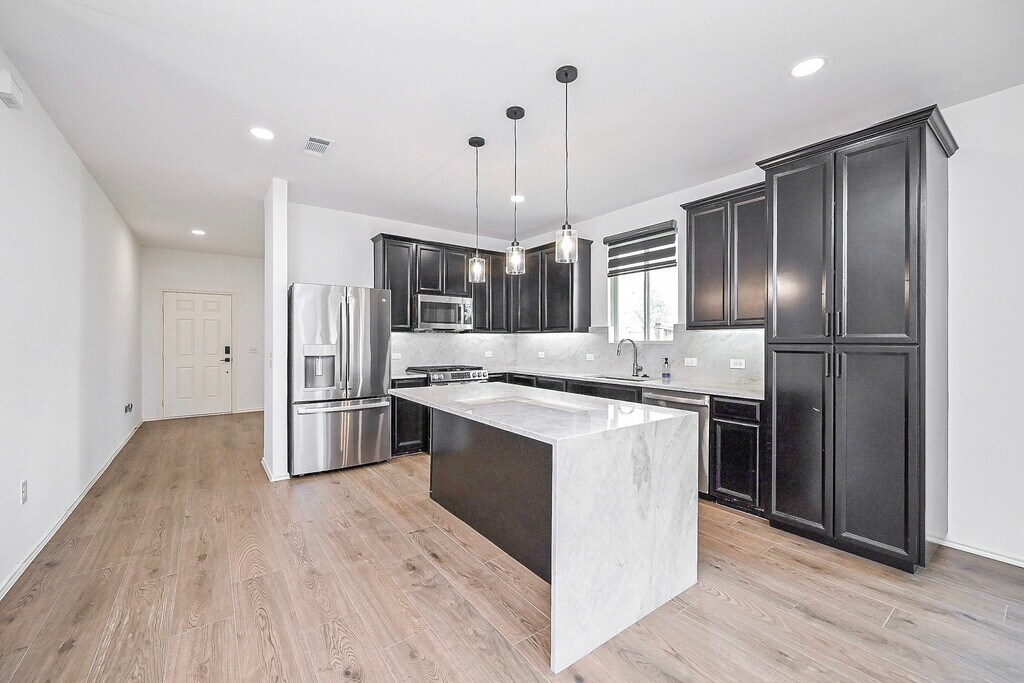 Experience modern comfort in this beautiful single-story corner-lot home in the sought-after King Crossing community. Featuring 3 bedrooms,2 baths,and an extra flex room perfect for a home office or entertainment space. The open-concept kitchen boasts a custom waterfall island with matching backsplash,flowing seamlessly into the spacious family room—ideal for gatherings and everyday living. Nestled in a quiet,friendly neighborhood,this home offers easy access to top-rated Katy ISD schools,major highways,and nearby attractions like Katy Mills and LaCenterra. With stylish design,great location,and true comfort,5046 Royal Amber is ready to welcome you home. MLS# 36563491