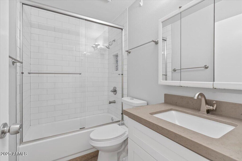 Discover this beautifully enhanced,single-story townhome featuring three bedrooms,ideally situated in the heart of Scottsdale. Enjoy easy access to Loop 101,Scottsdale Fashion Square,the greenbelt,numerous parks,a scenic lake with a walking path,dining options,and spring training venues. The home boasts a generous split floor plan with extensive renovations completed in 2019,including the kitchen and bathrooms. Highlights include quartz countertops,white shaker cabinets with soft-close features,modern light fixtures,a washer and dryer,durable vinyl laminate flooring,fresh interior and exterior paint,ceiling fans with integrated lighting,dual-pane windows,and more. The property offers three parking spaces and a storage shed. The open patio is perfect for savoring Arizona's climate,with ample room for a BBQ or firepit. The community pool is just a short walk away.