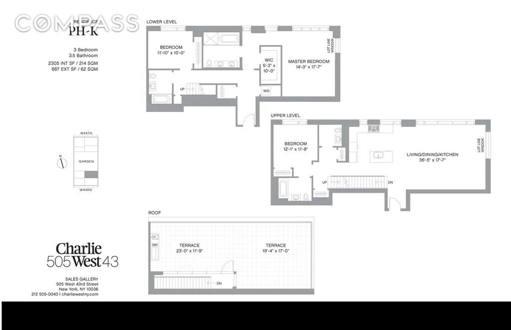 Penthouse PHK crowns the top floors of Charlie West, a meticulously designed 2,305-square-foot, three-bedroom, three-and-a-half-bathroom triplex with an extraordinary 667-square-foot private terrace—a true rarity in Manhattan. Bathed in north and eastern light, this residence delivers sweeping Midtown skyline views through dramatic floor-to-ceiling windows. Wide-plank white oak floors anchor the home with warmth and sophistication, while the layout balances scale, flow, and privacy across three levels. The chef’s kitchen is as refined as it is functional, featuring fully integrated appliances by Thermador, Bosch, and Danby, sleek cabinetry, and clean modern lines—designed for both everyday living and effortless entertaining. The primary bath is a spa-level retreat, finished in Calacatta marble flooring, porcelain walls, and Toto fixtures, delivering hotel-quality luxury at home. A Bosch washer and dryer complete the residence. Residents of Charlie West enjoy a full suite of luxury amenities: a striking double-height lobby, a tranquil private garden courtyard, a heated indoor swimming pool, a state-of-the-art fitness center, convenient bike storage within the lobby, and a spectacular rooftop terrace with panoramic city views. Perfectly positioned just moments from the West Side Highway and in the heart of Hell’s Kitchen, this location offers immediate access to some of Manhattan’s best restaurants, nightlife, and cultural destinations—dynamic, connected, and unmistakably New York. This is top-floor living at its finest. Private showings available by appointment. The Following Fees are Due with this Apartment: - $20 Application Fee Per Applicant - 1st Month Rent and 1 Month Security deposit due at signing Condo Fees: - $700 Application Processing Fee due upon submission - $120 Credit Check Fee per person due upon submission (required) - $500 Non-Refundable Move-in Fee due upon submission - $1,000 Pet Security Deposit due upon submission (only applicable to dog owners) - $500 Refundable Move-in Deposit due upon submission - $500 Refundable Move-out Deposit due upon submission - $120 Application Initiation Fee - $65 Digital Submission Fee - 5% of above Total (excluding digital submission & initiation fees)